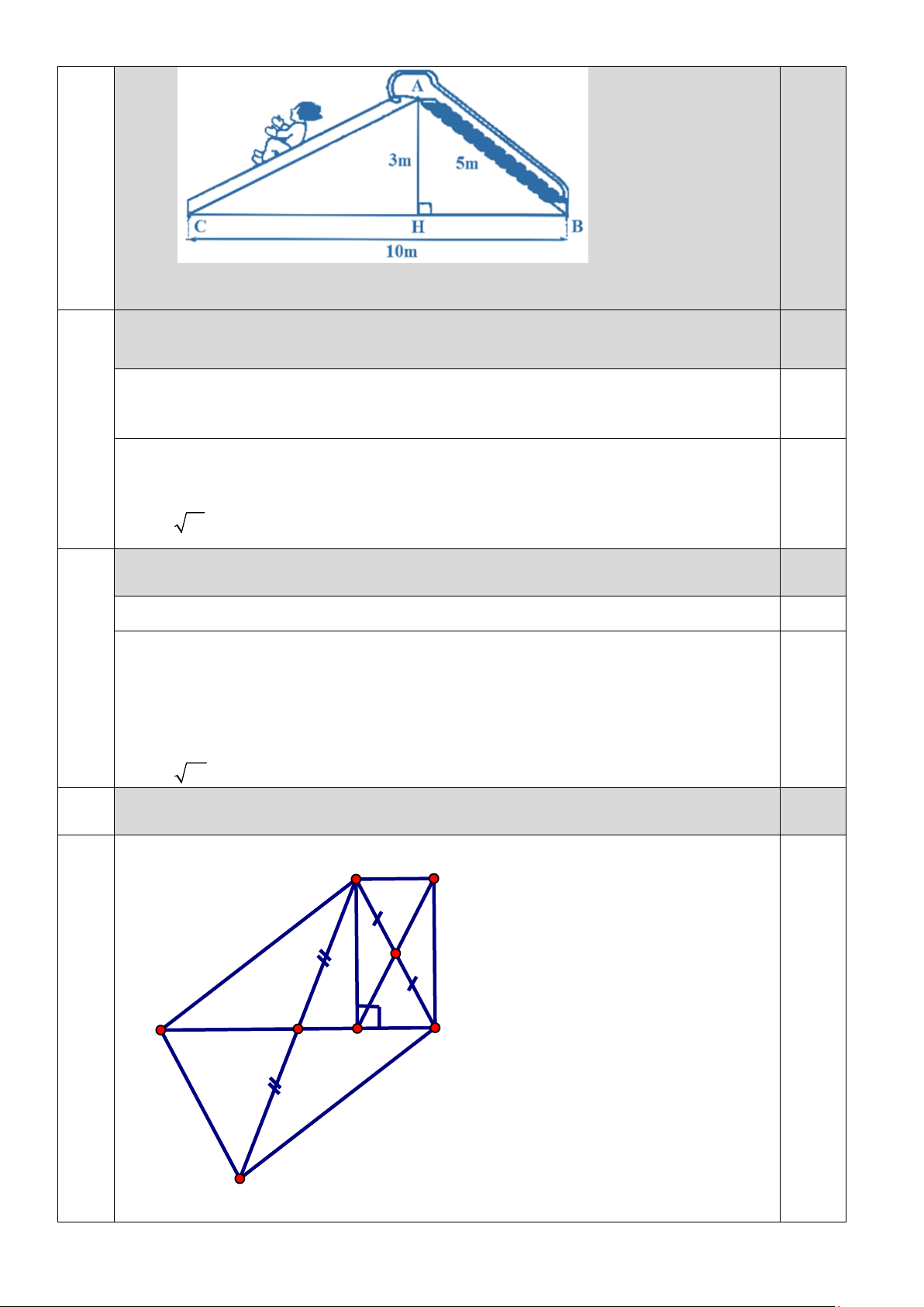 Câu 15. (1,00 điểm) Một chiếc cầu tuột trong khu trò chơi có chiều cao AH = 3 m, chiều dài