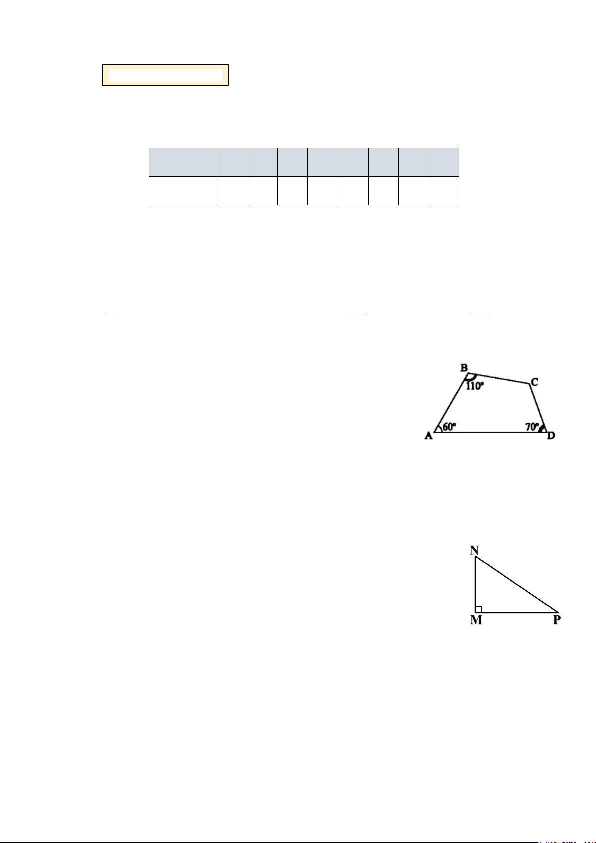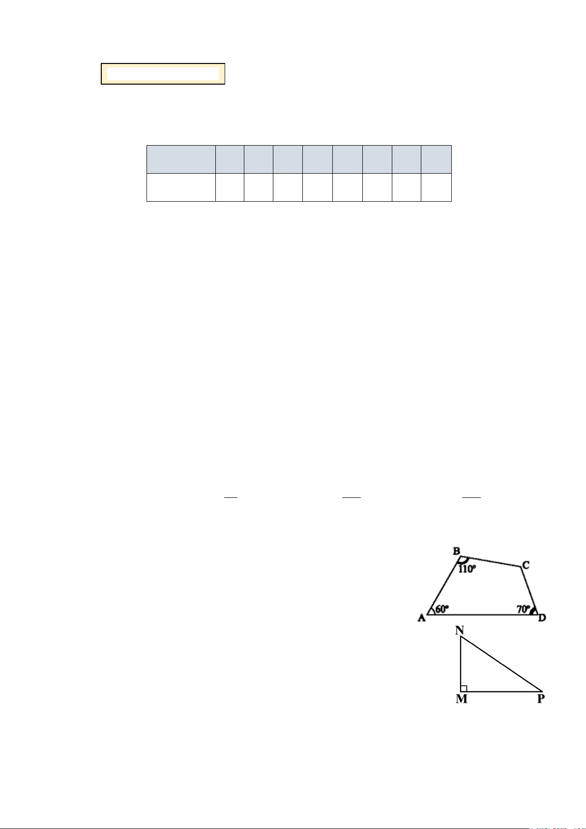 Câu 6. Cho tứ giác ABCD, biết 0 = 0 = 0
