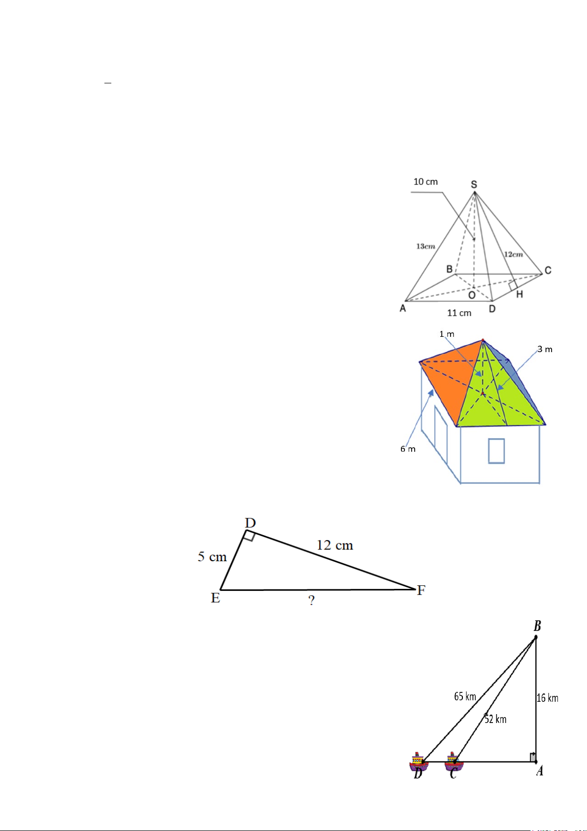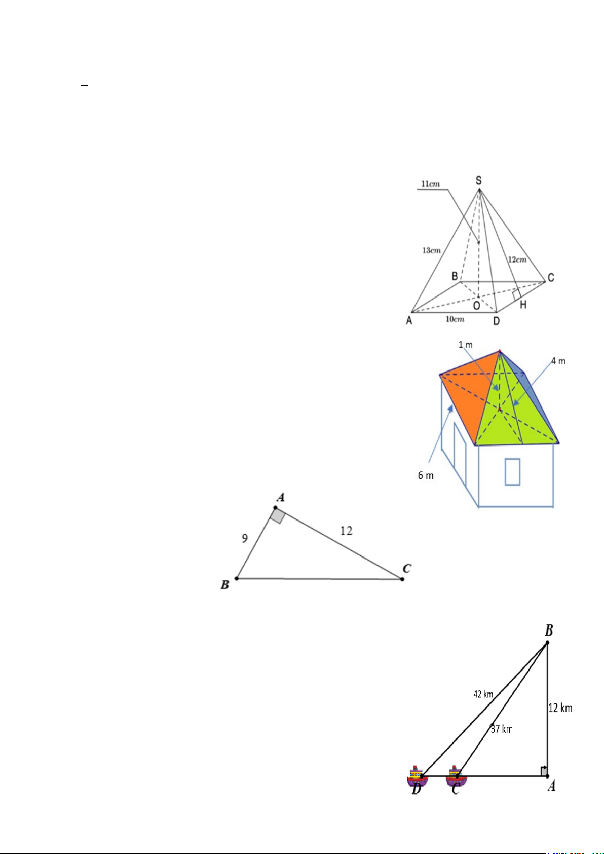 Bài 5. (1,0 điểm) Một mái nhà hình chóp tứ giác đều có cạnh đáy là