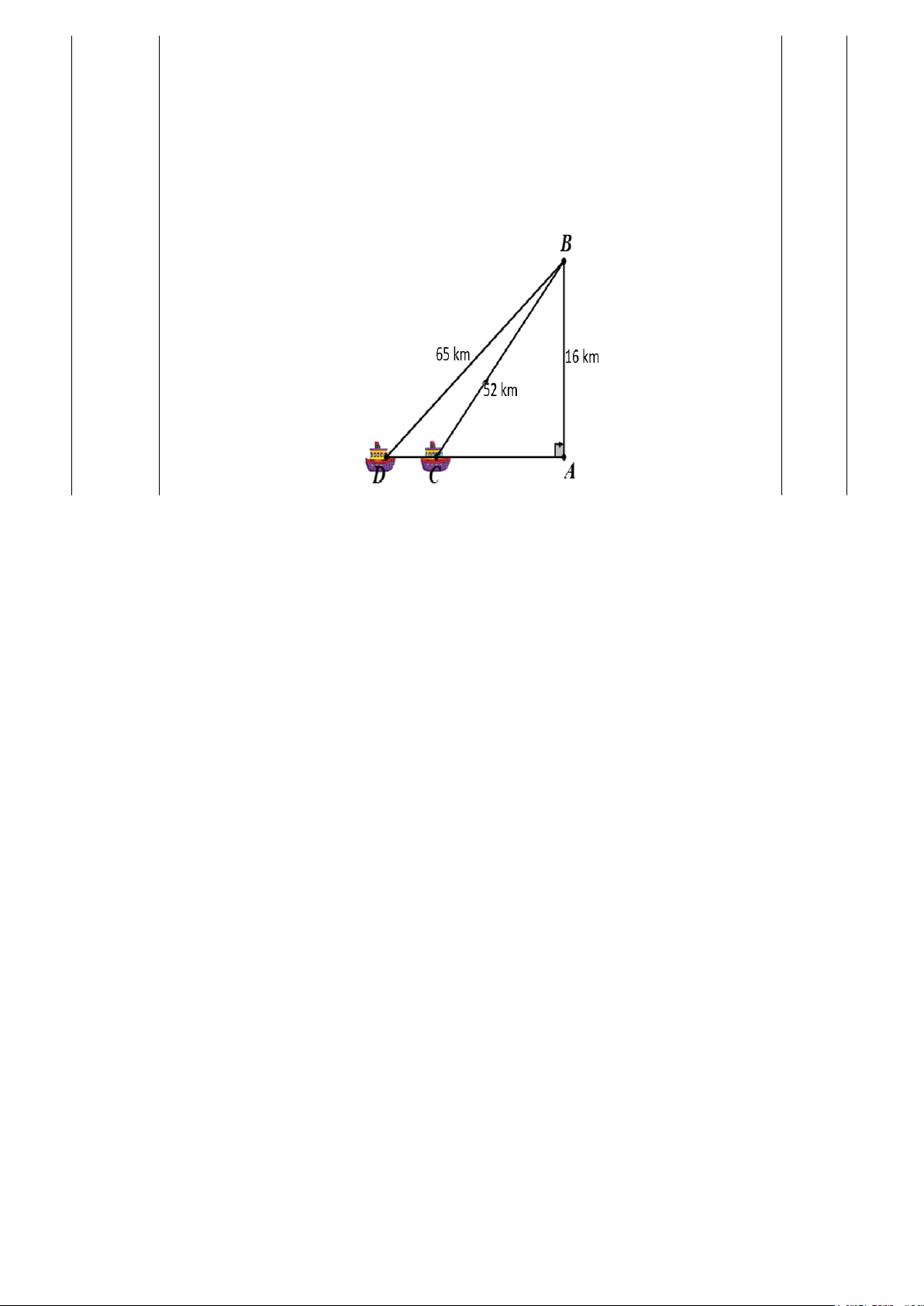 (thuyền C) lần lượt cách đảo B là 65 km và 52 km, khoảng cách từ đảo