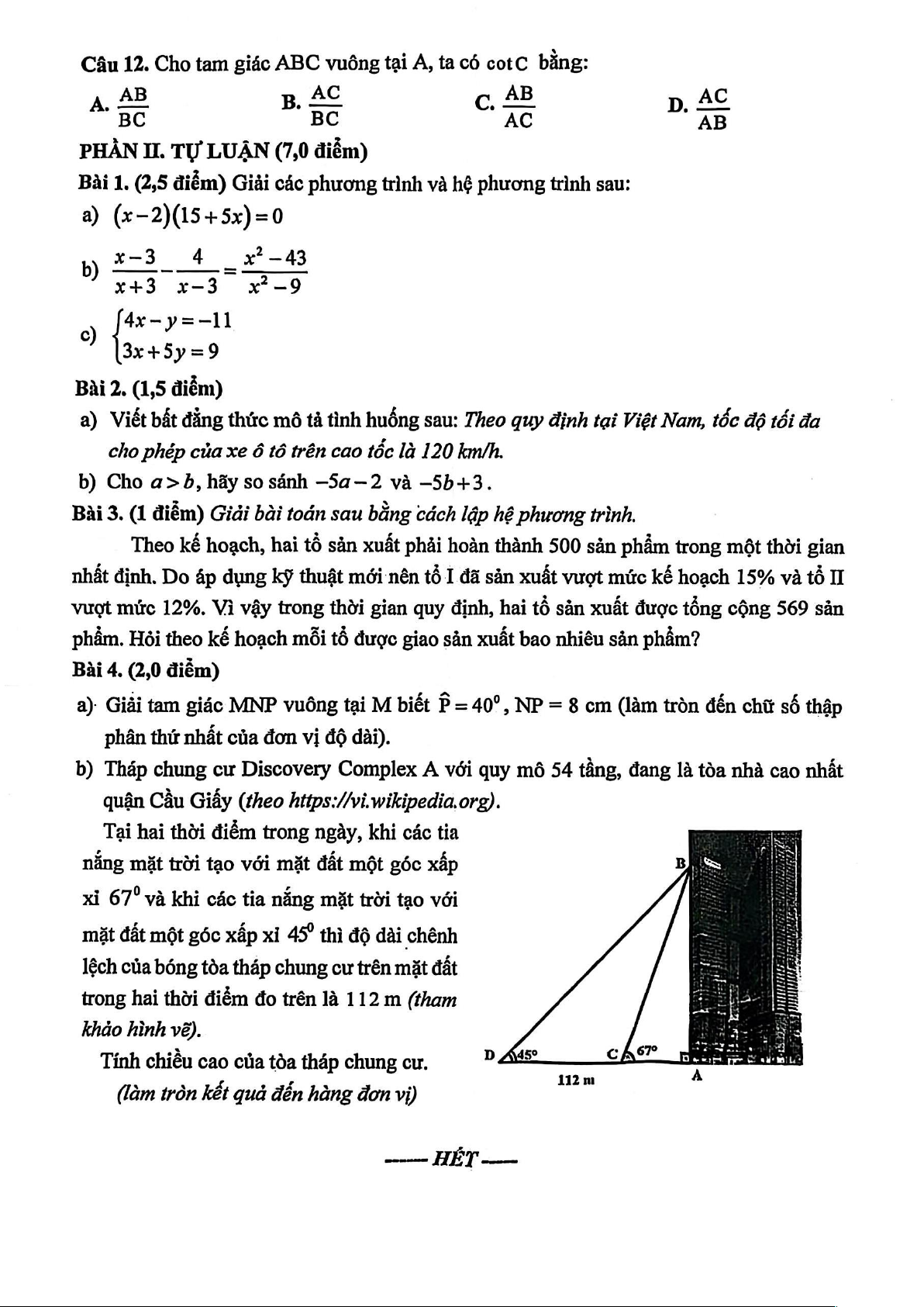 Đề giữa học kỳ 1 Toán 9 năm 2025 – 2026 trường THCS Nguyễn Gia Thiều – TP HCM