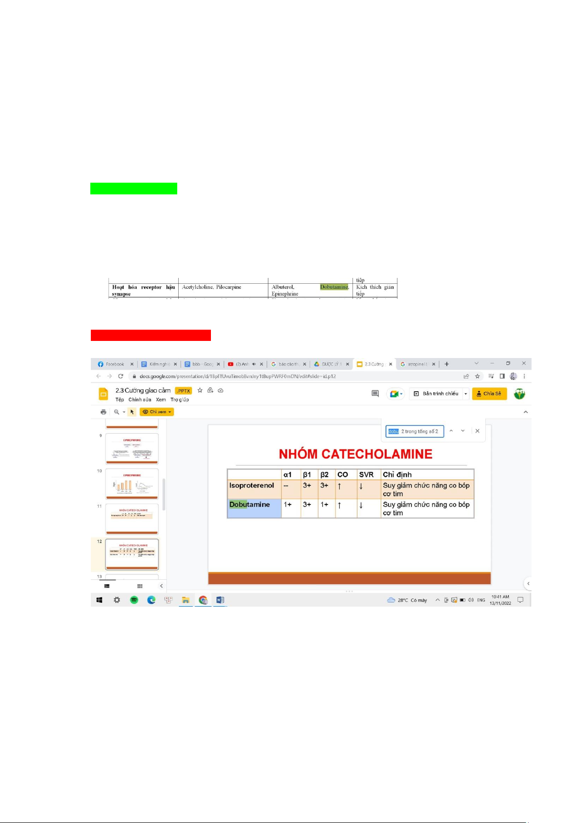 Khi sử dụng thuốc có tác dụng cường phó giao cảm, bệnh nhân sẽ có biểu hiện nào sau đây? (1 Điểm) Nhịp tim nhanh lOMoAR cPSD| 47207194 Bí tiểu Giãn phế quản Co đồng tử 6.