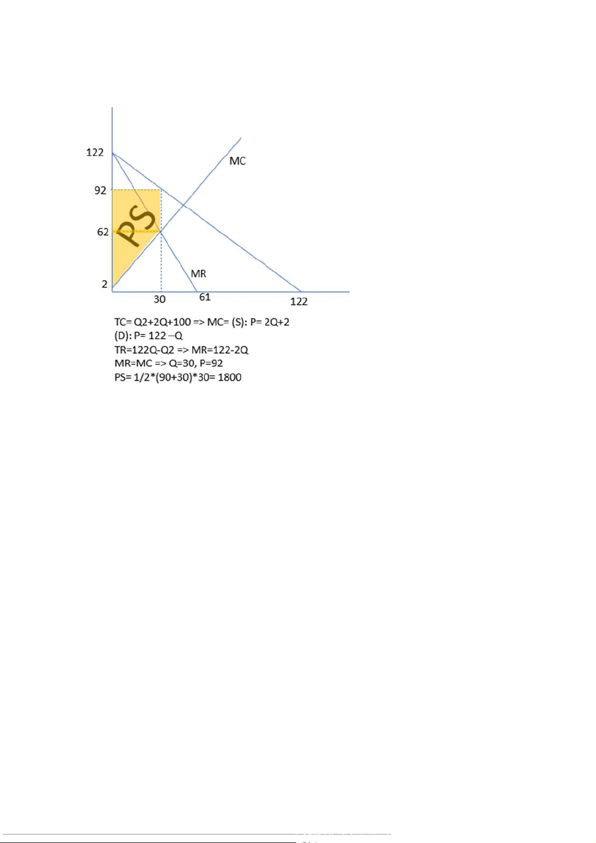 5. Một nhà độc quyền có hàm chi phí TC = Q + 2Q + 100 và đối diện với hàm 2 cầu P = 122 – Q. Lợi