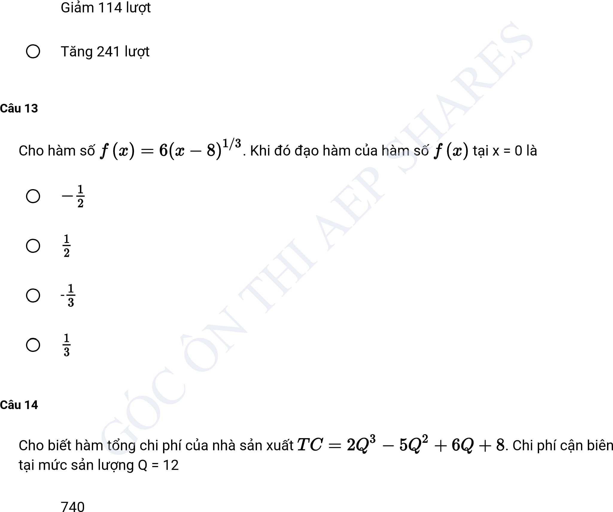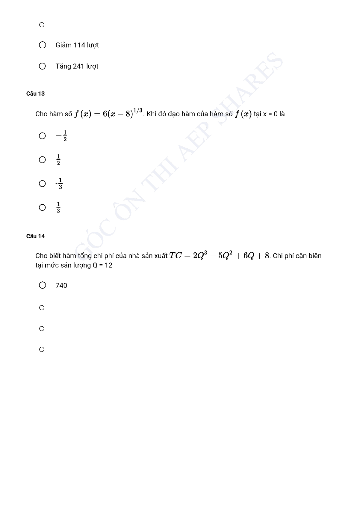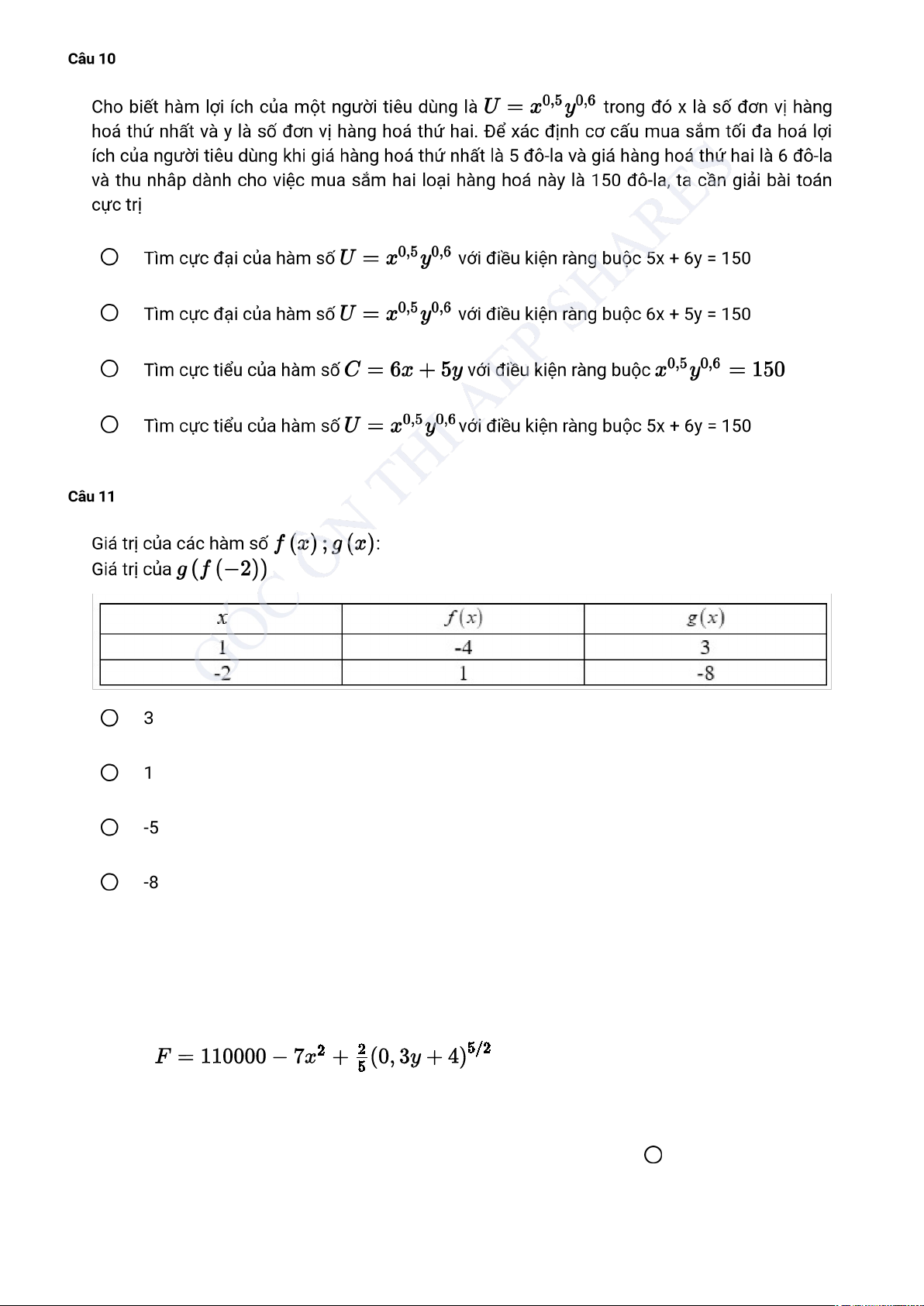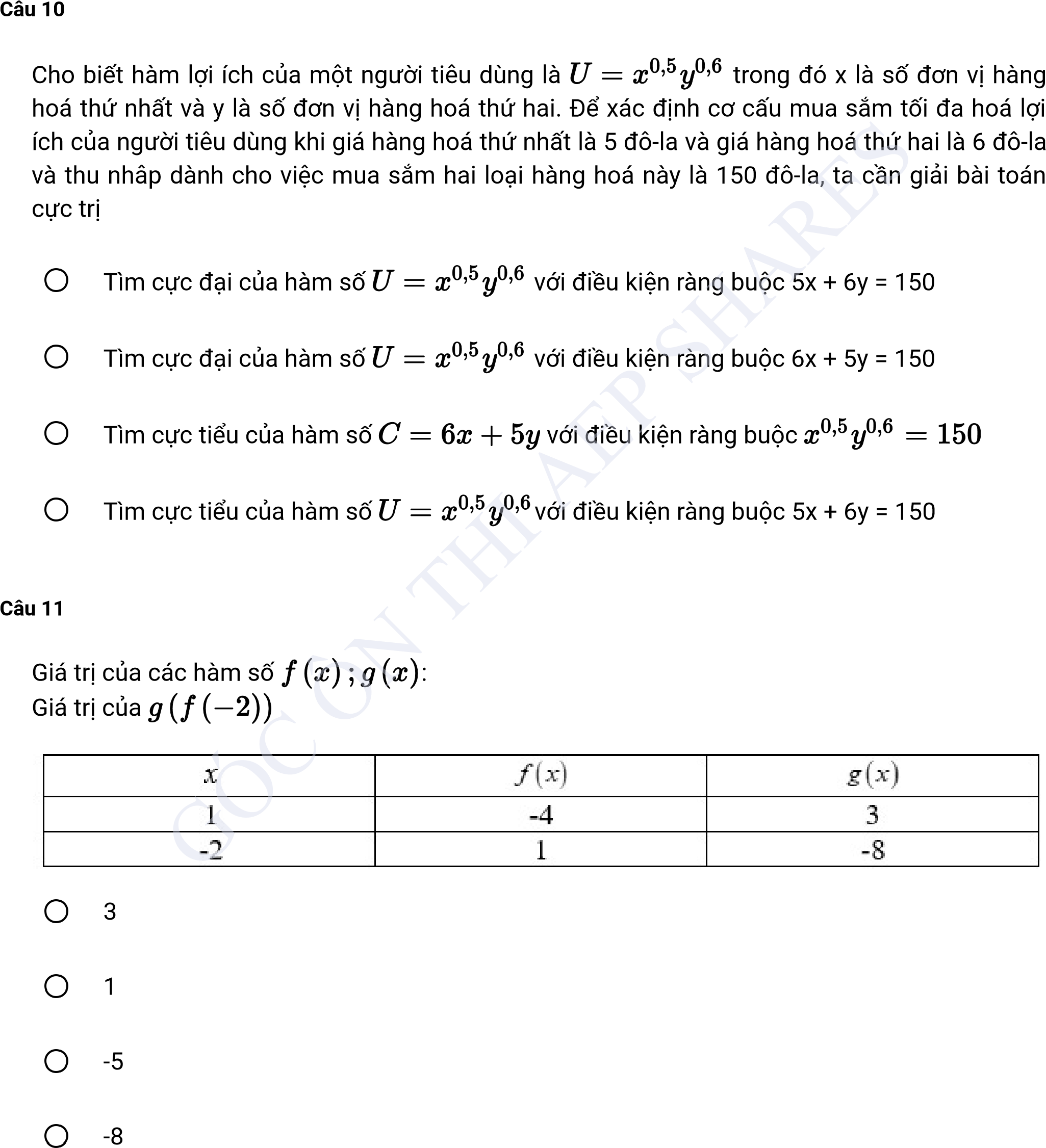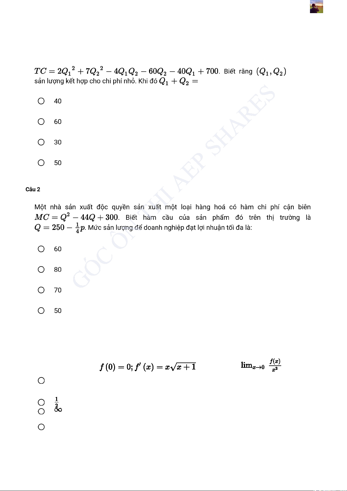 ĐỀ GIỮA KỲ Toán cho các nhà kinh tế