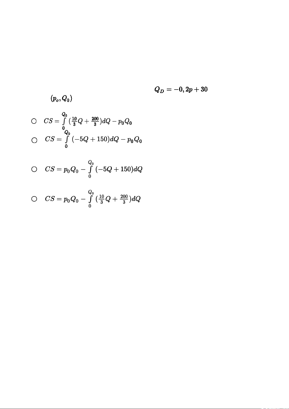 Cho biết hàm cầu đối với một loại sản phẩm là . Biết điểm cân bằng thị