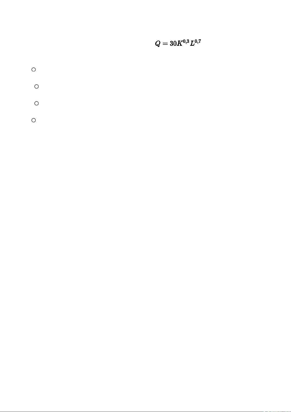 Một nhà sản xuất ước tính rằng sản lượng đầu ra phụ thuộc vào lượng tư bản K (đơn vị: nghìn đồng) và lao động L (đơn vị: số giờ công) theo hàm sản xuất . Giá trị sản phẩm hiện vật cận biên của lao động tại mức sử dụng 630 nghìn đô la giá trị tư bản và 830 giờ công xấp xỉ bằng