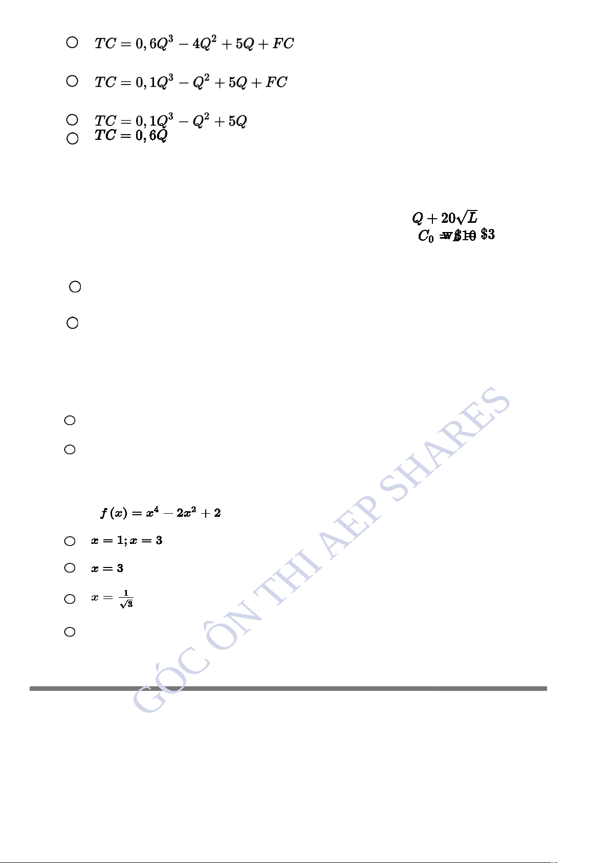 Cho hàm chi phí cận biên tại mức sản lượng Q là với chi phí cố định FC. Khi đó hàm tổng chi phí là