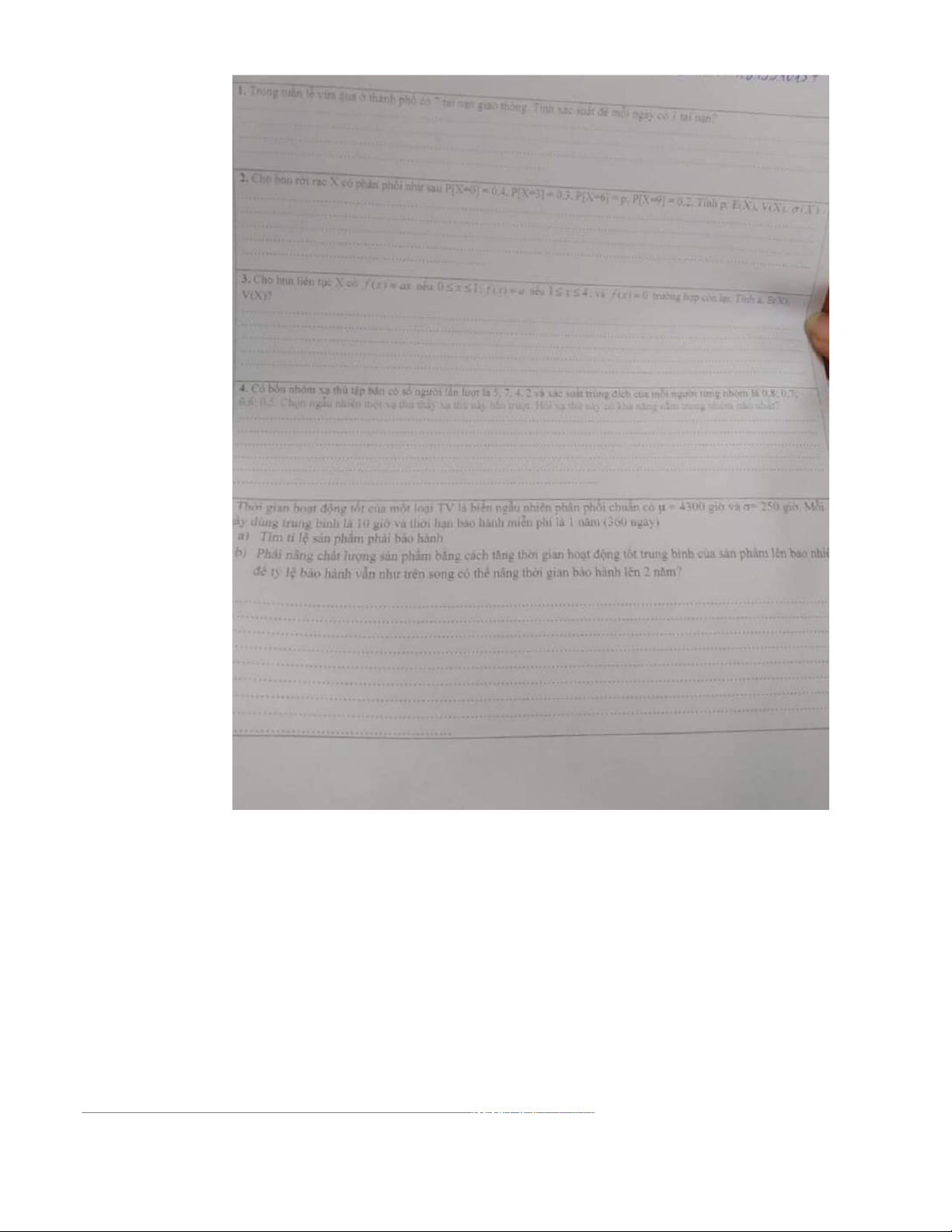 1. Trong tuần lễ vừa qua ở thành phố có 7 tai nạn giao thông. Tính xs mỗi ngày có 1 tai nạn.