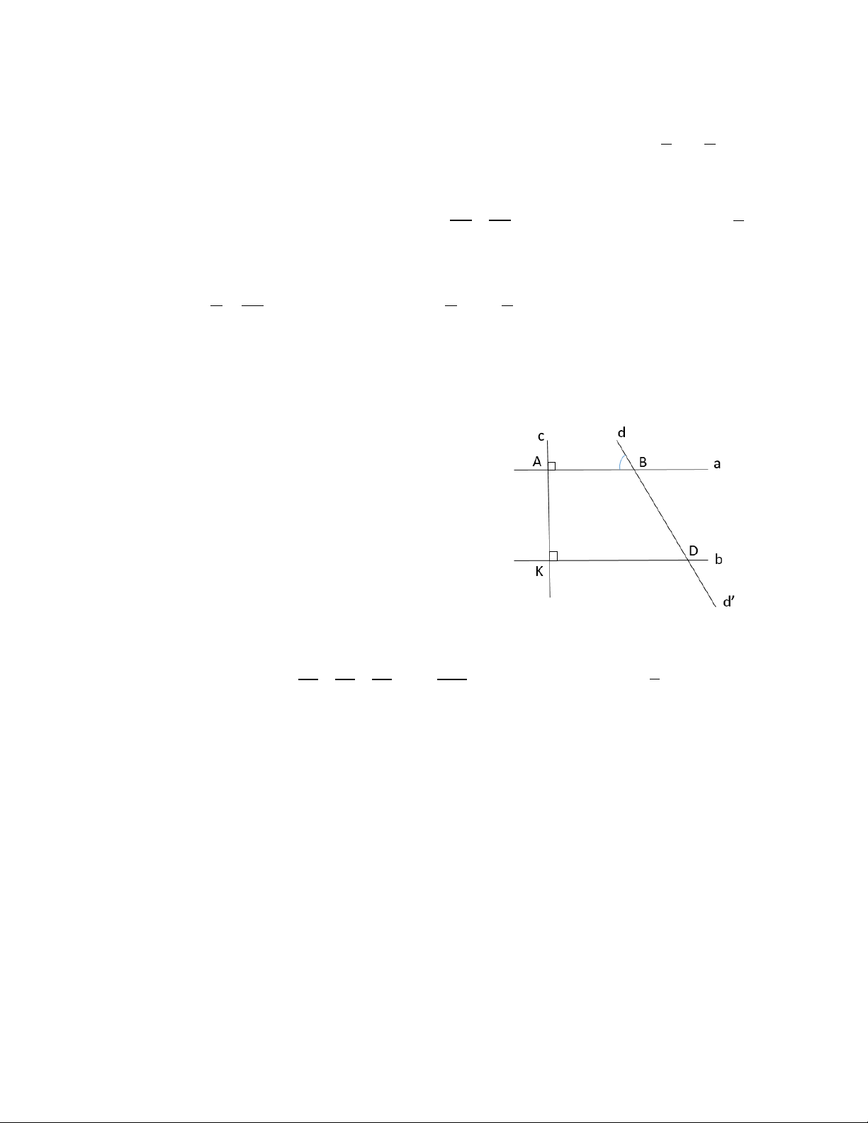 b) Vì c ⊥ a tại A và c ⊥ b tại K nên a//b hay AB//KD 0,5 Ta có a//b nên =