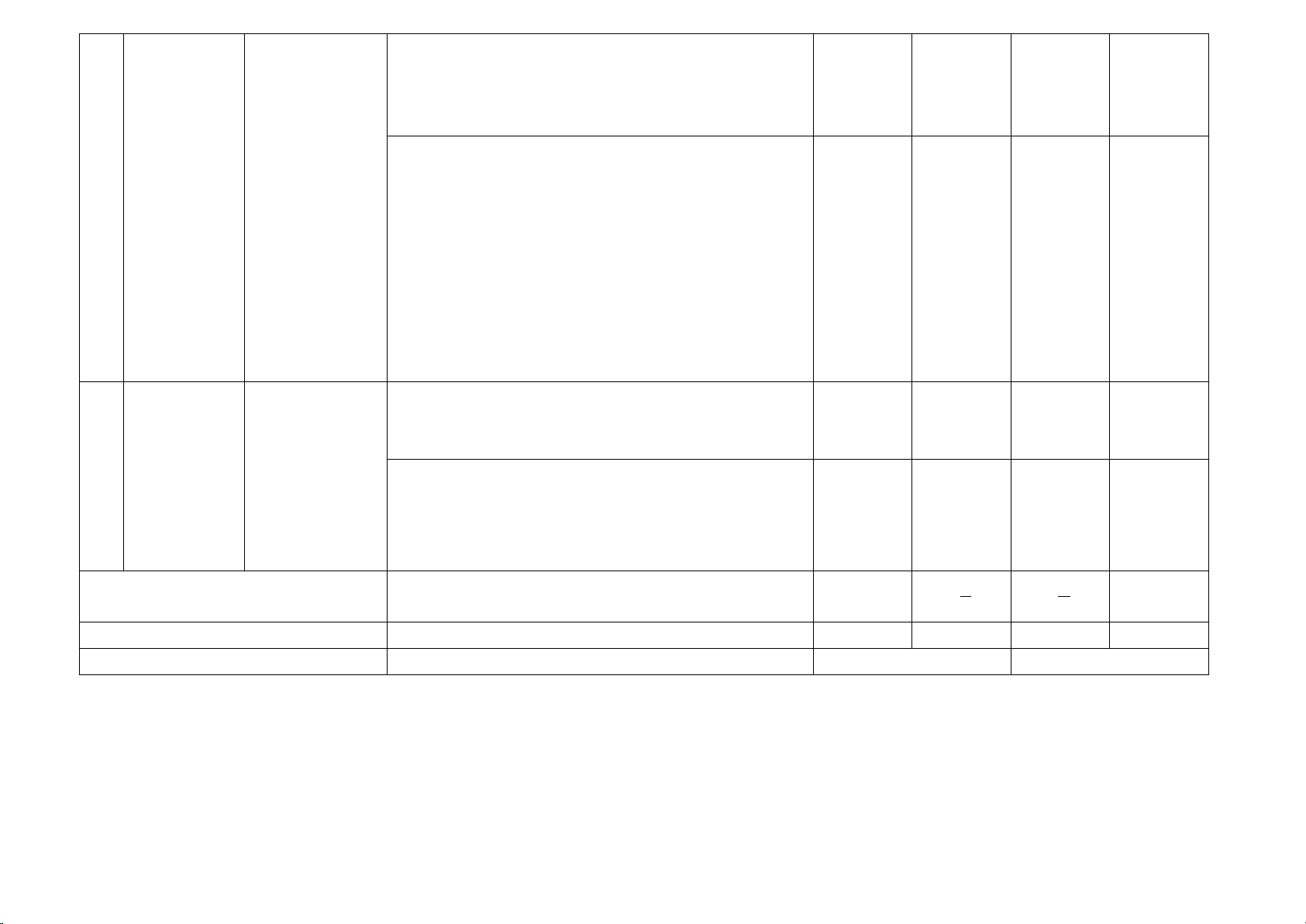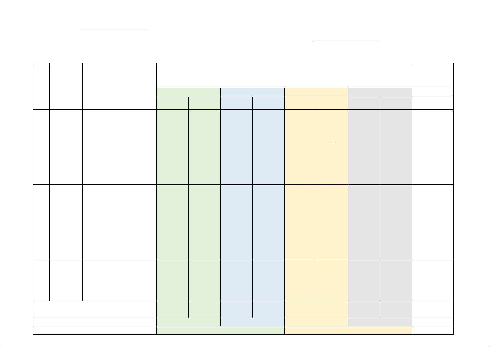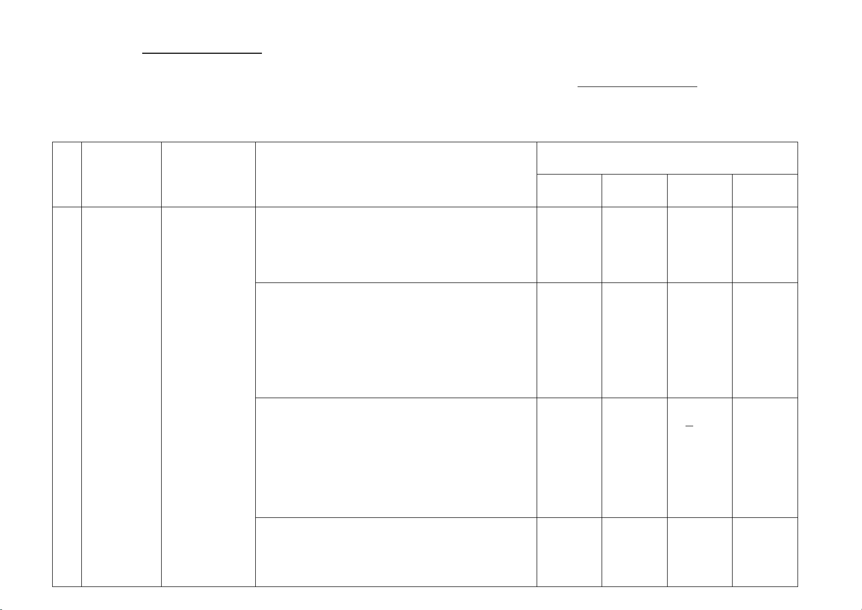 TT Chương Nội dung/đơn vị kiến (4-11) (12) (1) /Chủ đề thức (2) (3) Nhận biết Thông hiểu Vận dụng Vận dụng cao TNKQ TL TNKQ TL TNKQ TL TNKQ TL - Tập hợp số hữu tỉ - Cộng, trừ, nhân, chia số hữu tỉ. - Lũy thừa với số mũ 1 Số hữu 2 1 2 1/3 tỉ tự nhiên của một số 1 hữu tỉ. (0,5đ) (1,5đ) (0,5đ) (0,5đ) 1 23 (1,0đ) 60 (2,0đ) - Thứ tự thực hiện phép tính, quy tắc chuyển vế.