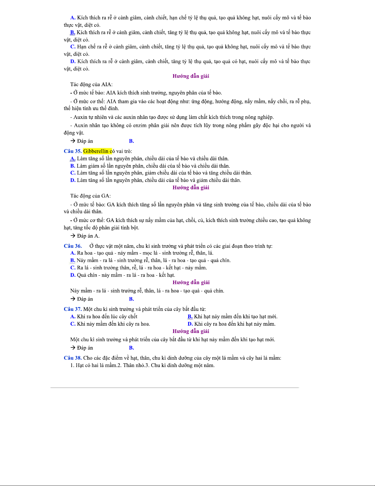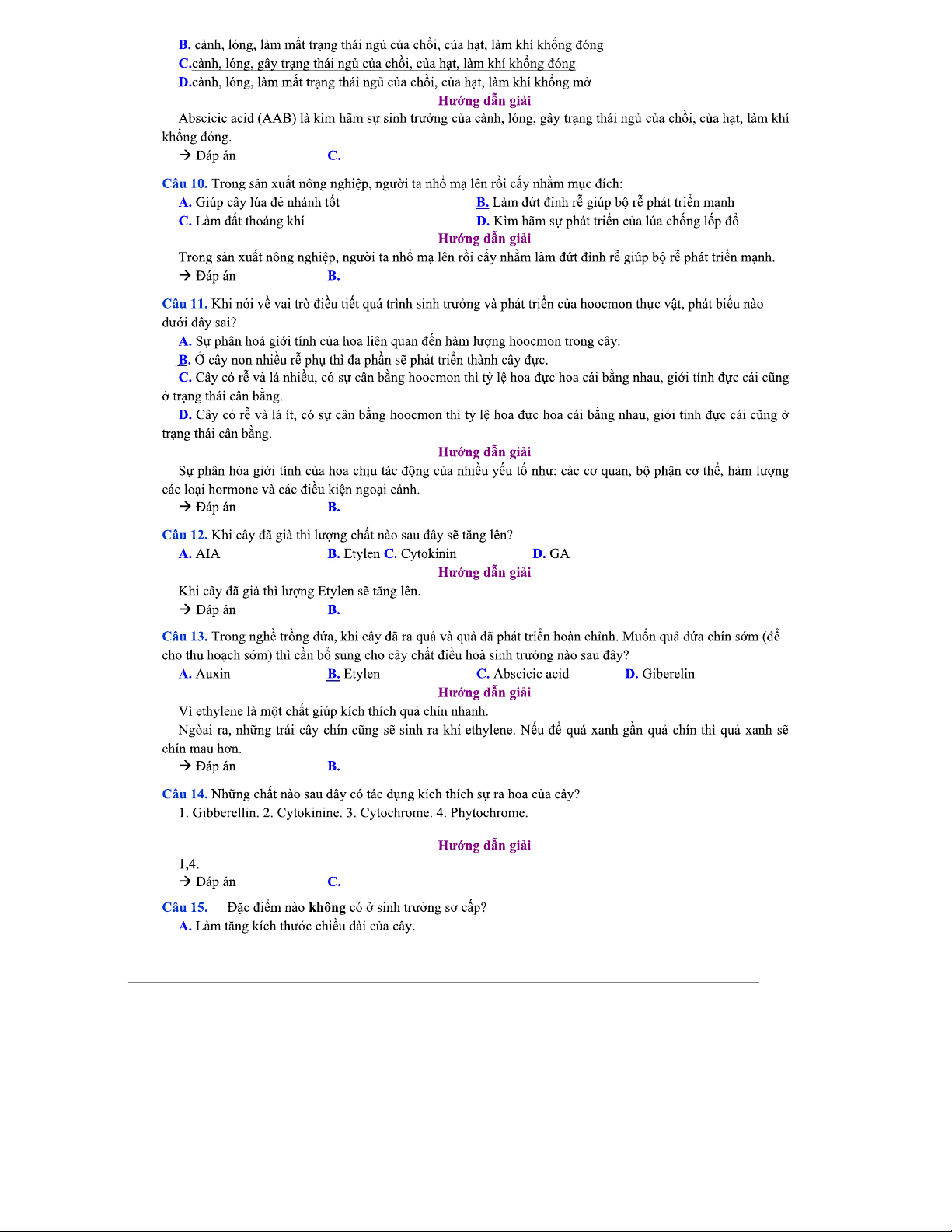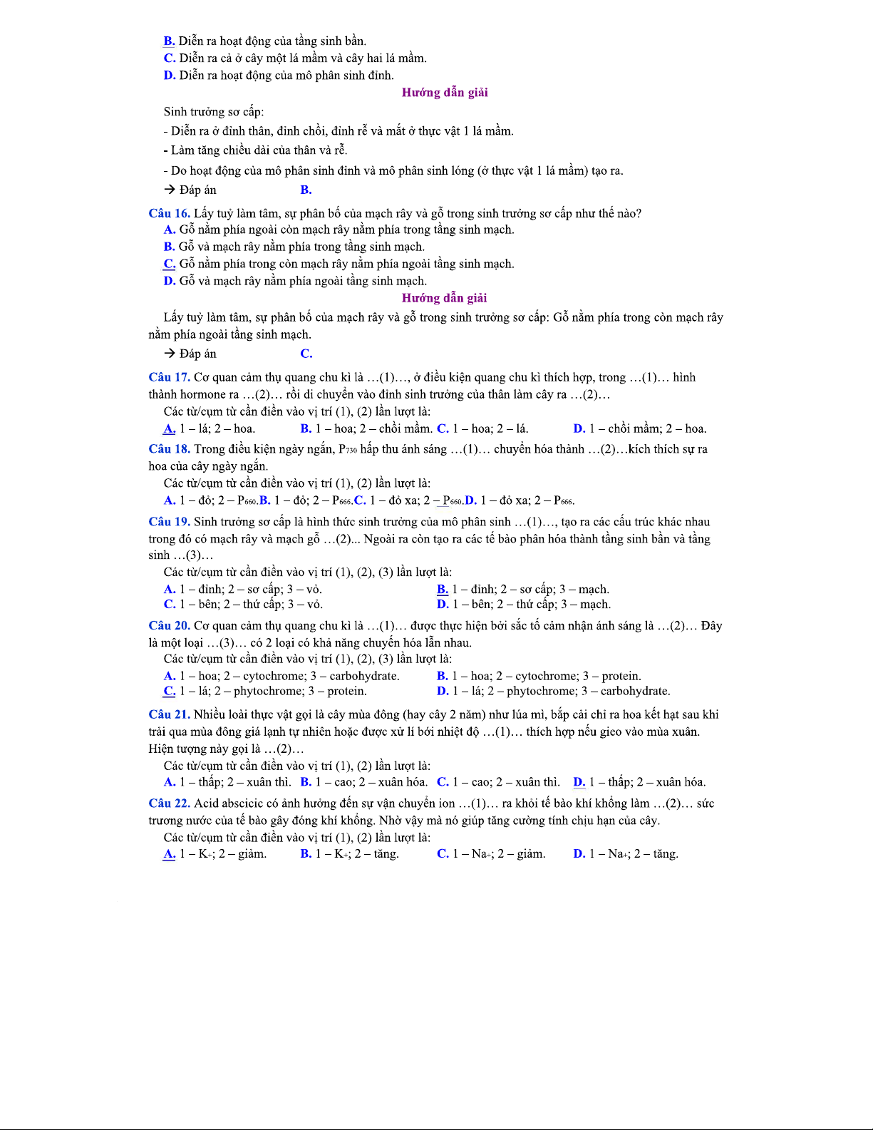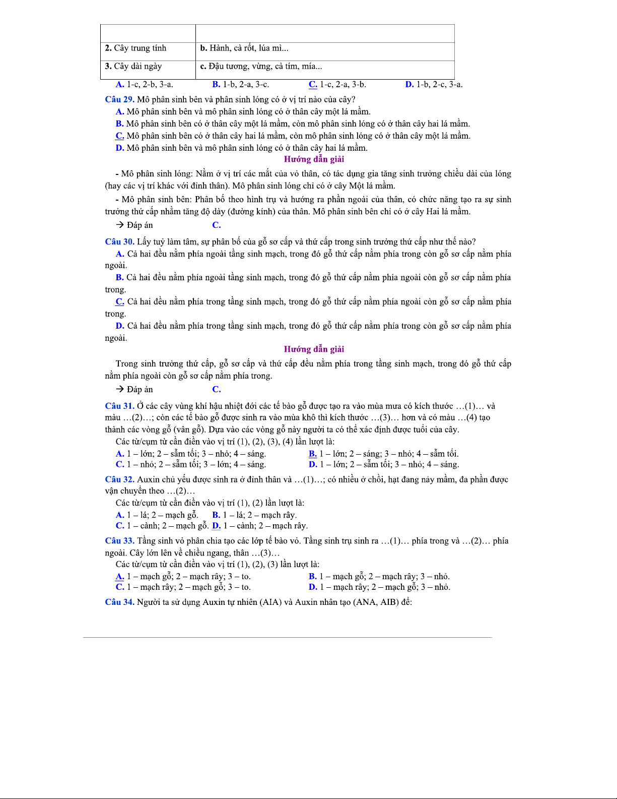 ĐỀ+ HĐG CÂU HỎI TRẮC NGHIỆM VỀ SINH TRƯỞNG VÀ PHÁT TRIỂN Ở THỰC VẬT