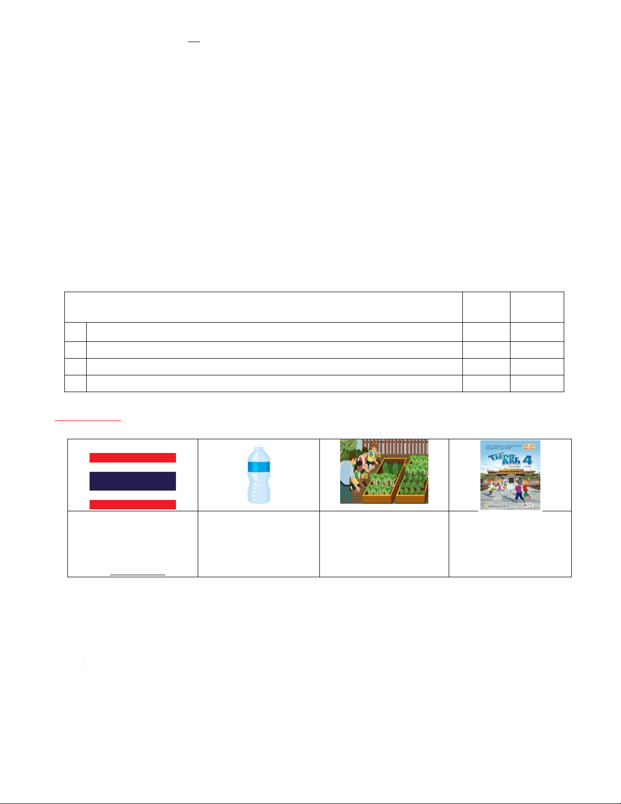 Khuong Mai Primary School Class: 4 …… Name: ………………………………… | THE FIRST SEMESTER TEST ENGLISH - CLASS 4 School year: 2023 – 2024 Duration: 35 minutes |