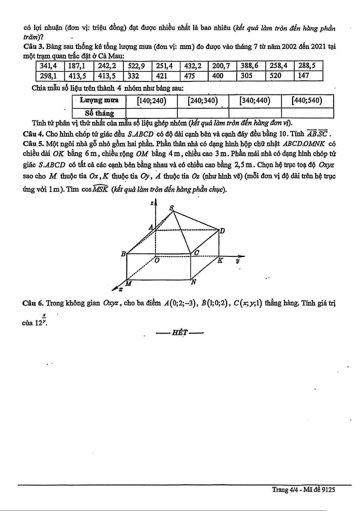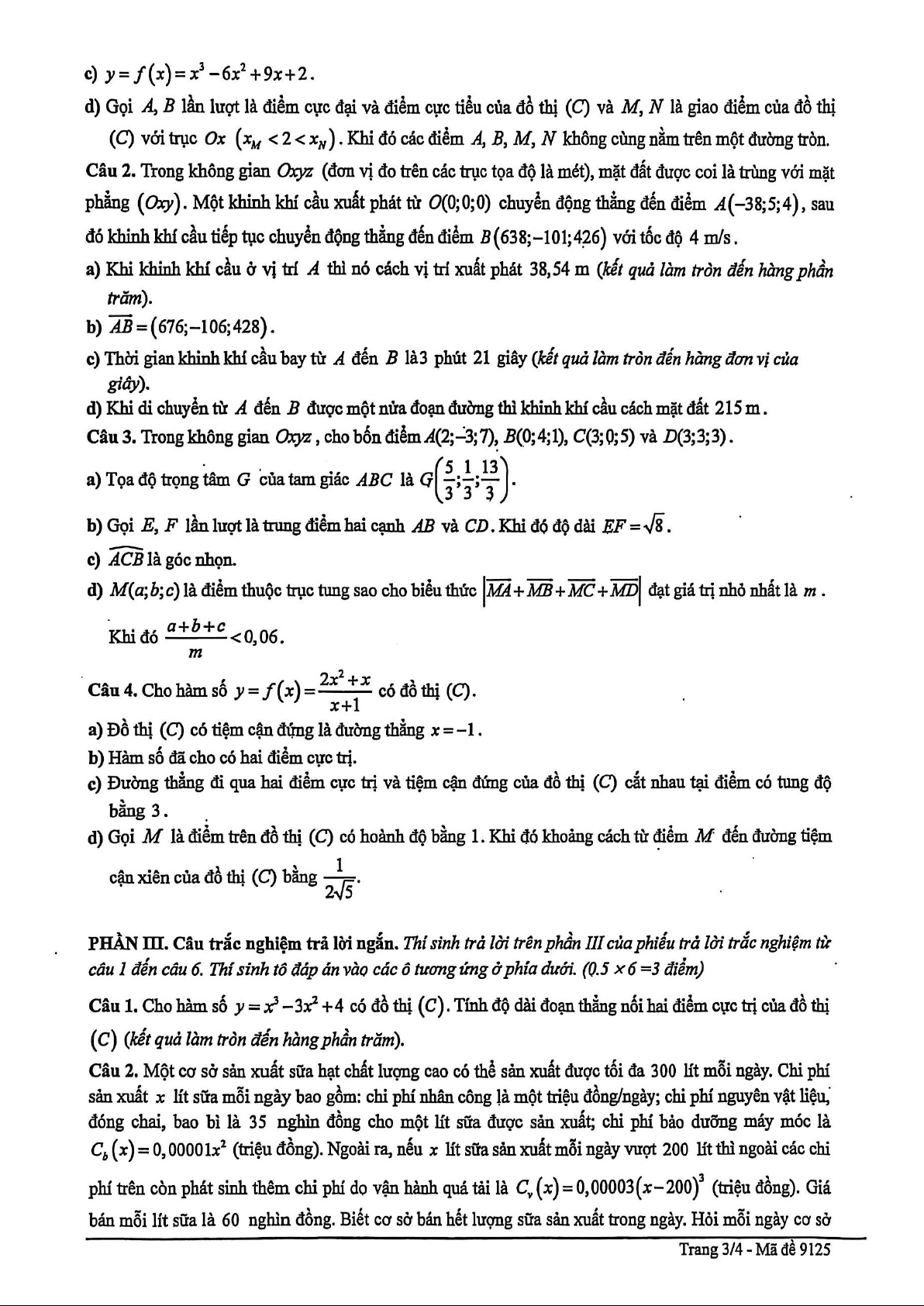Đáp án đề kiểm tra cuối kỳ I môn Toán Lớp 12 GDTX năm học 2025-2026 | Sở giáo dục và đào tạo Cần Thơ