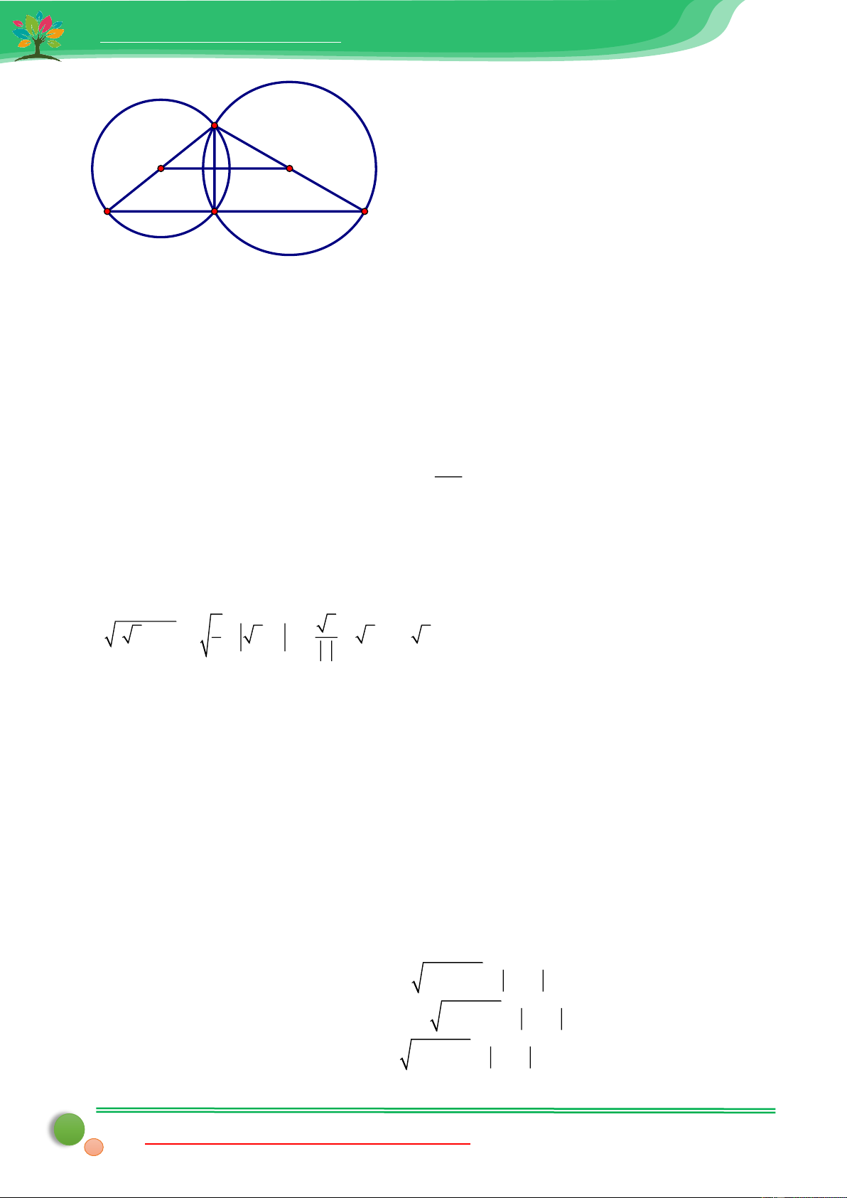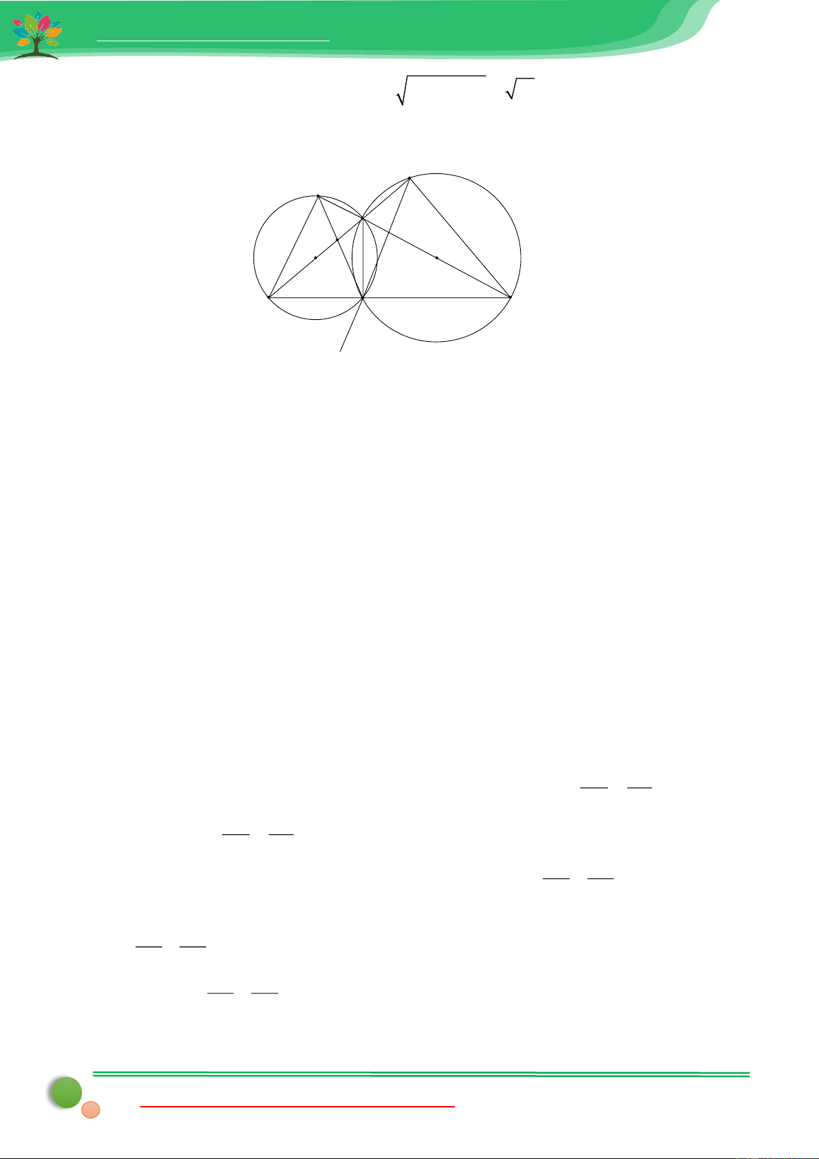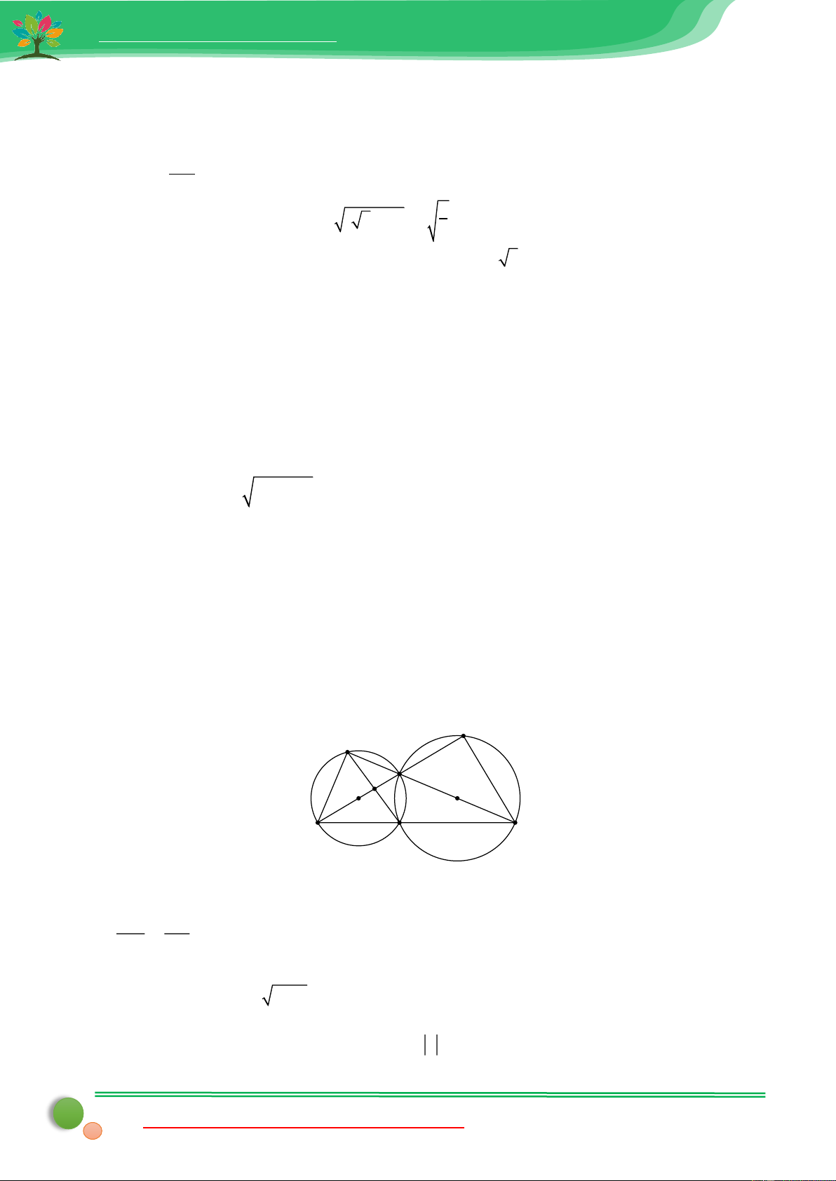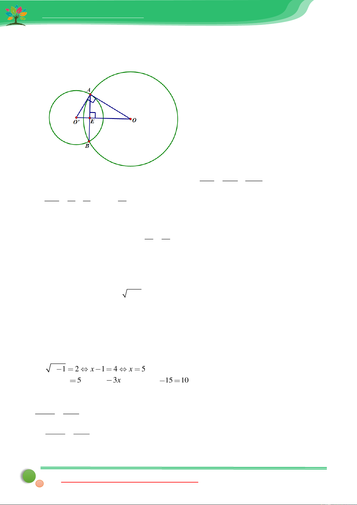nối tâm, tức là đường nối tâm là đường trung trực của dây chung. Hay OO' là đường trung trực của 24 48 AB. Nên: AB = 2.AE = 2. = = 9,6cm . 5 5 Câu 20: 605 Lời giải: Gọi x (c ,