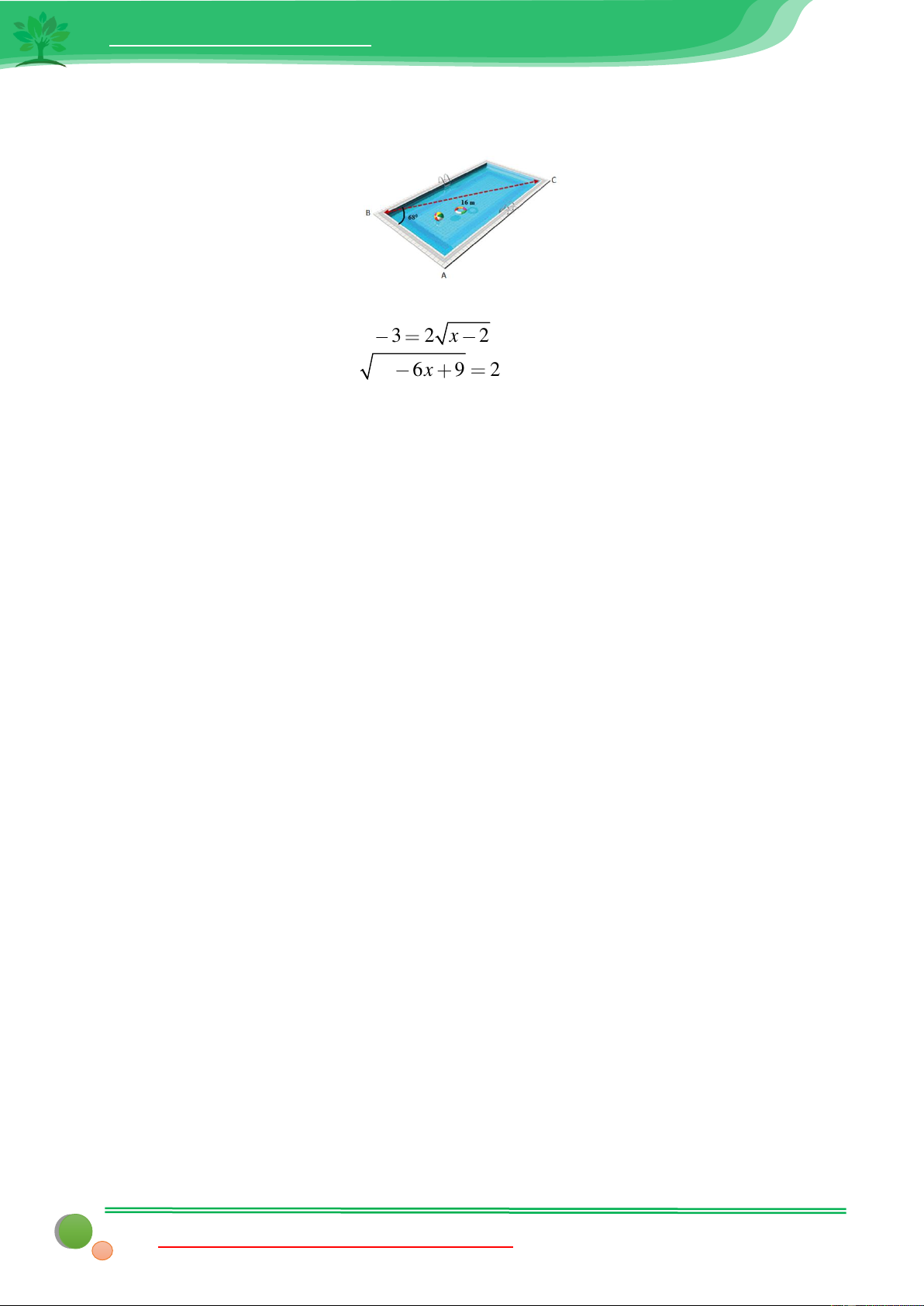 Câu 2: Một hồ bơi có mặt hồ là hình chữ nhật có chiều dài đường chéo BC =16m . Góc tạo