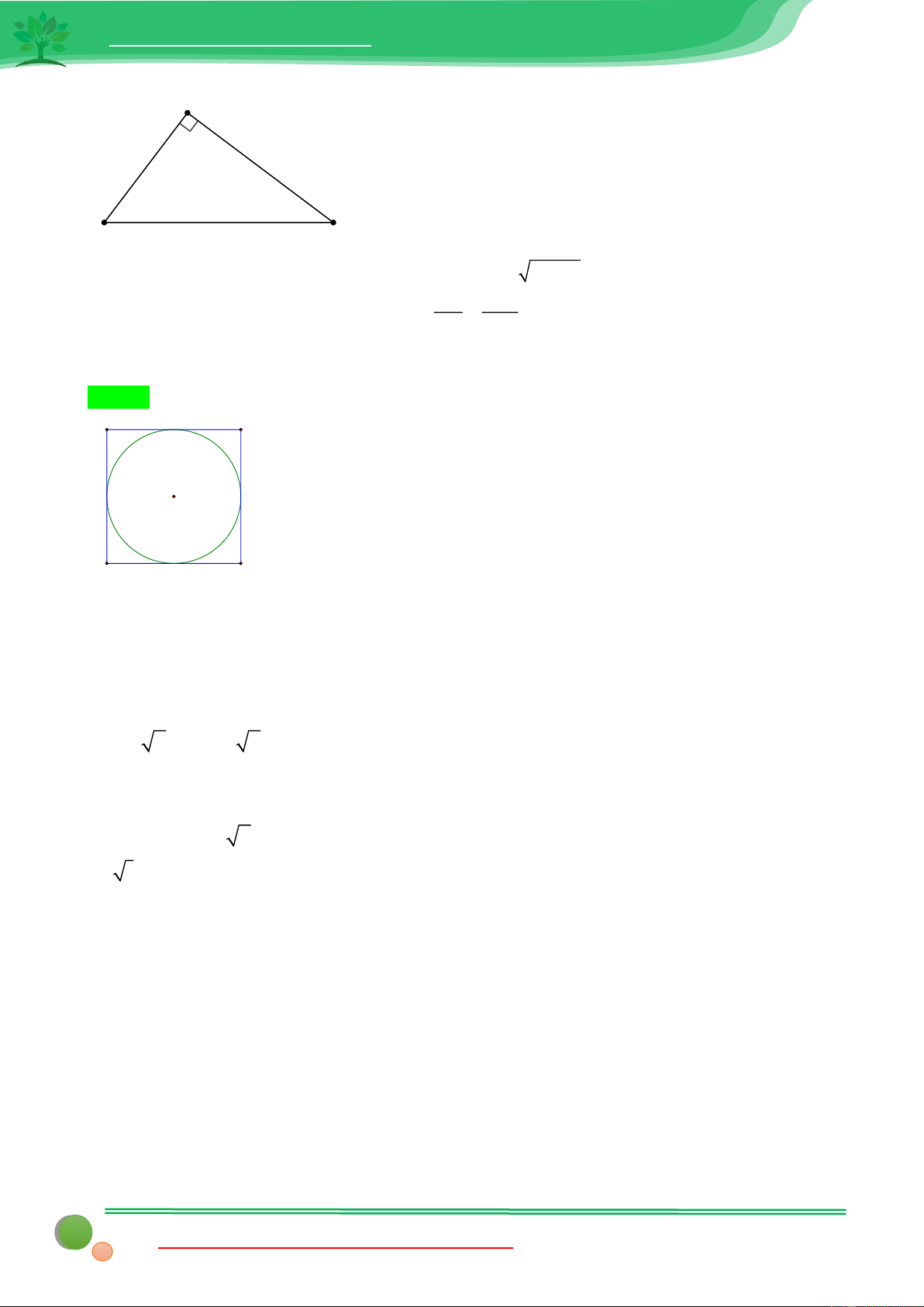 Vậy bán kính đường tròn là 6cm Câu 19: 9,6 Lời giải: 1 1 1 Xét O