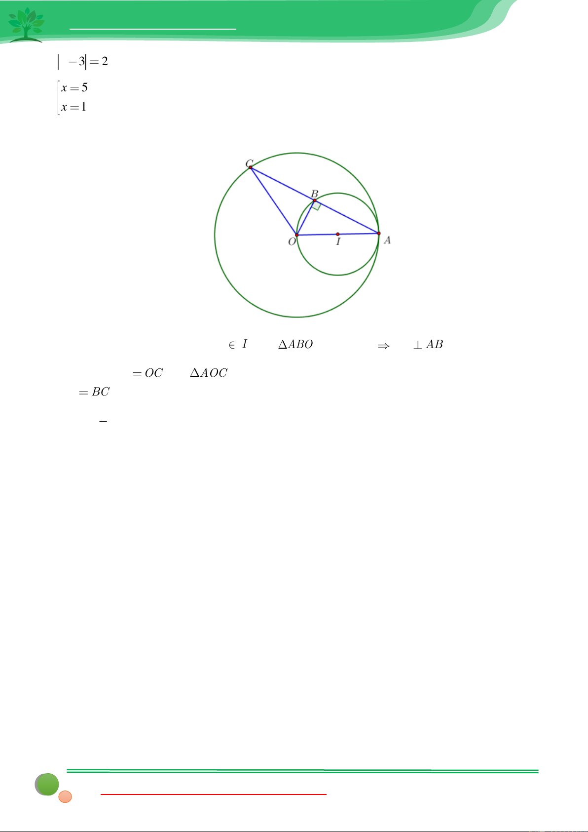 Câu 6: Cho đường tròn O bán kính OA và đường tròn tâm I đường kính OA . Dây AC khác
