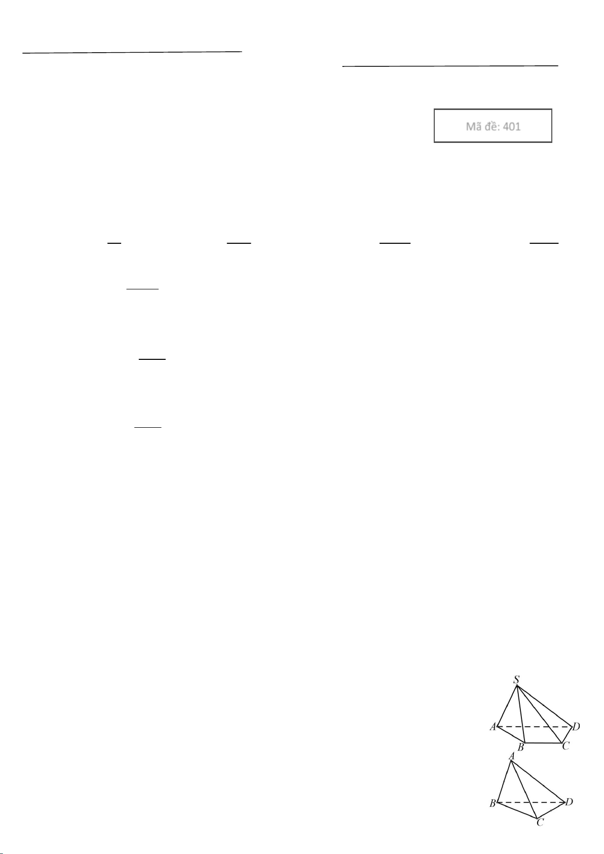 Họ và tên học sinh: ……………………………………………………………………………….. Mã đề: 401