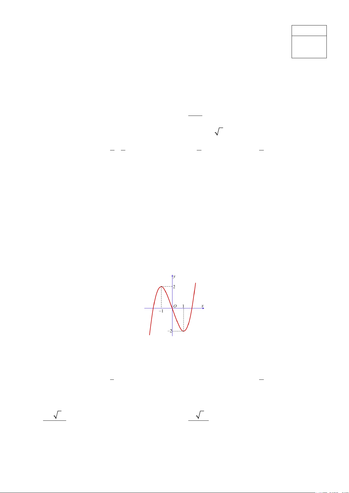 Câu 7. Cho hàm số bậc ba y = f (x) có đồ thị như hình vẽ bên dưới