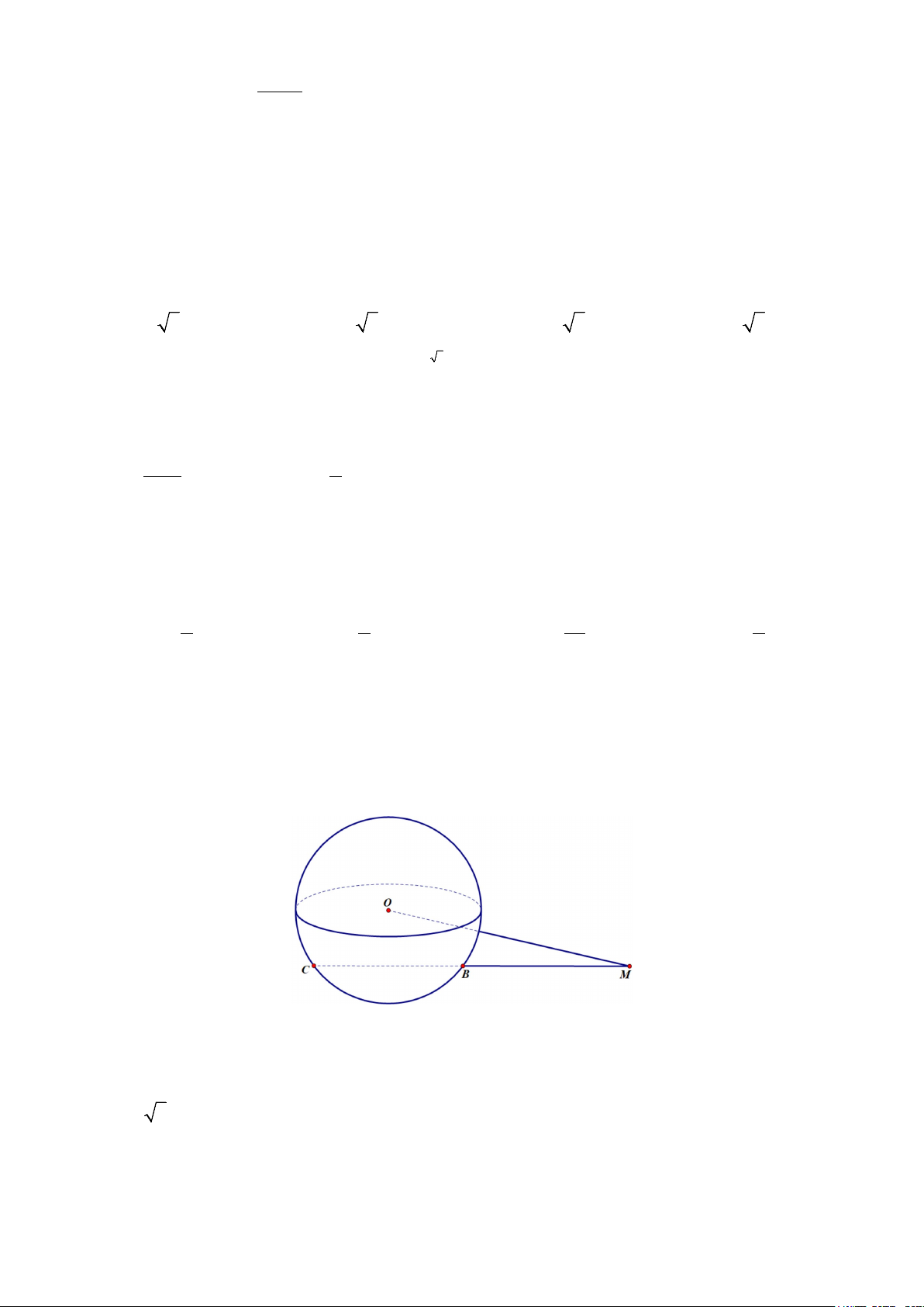 Câu 18. Cho mặt cầu (S ) có tâm O và một điểm M nằm ngoài (S ) sao cho OM = 4 . Qua M kẻ một