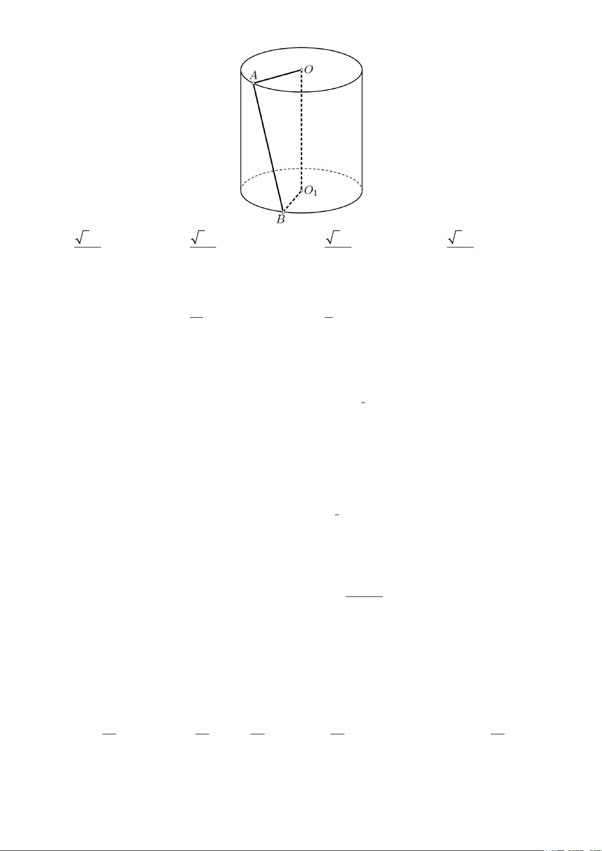 bán kính bằng a . Trên đường tròn đáy tâm O lấy điểm A , trên đường tròn đáy tâm O lấy điểm B sao 1