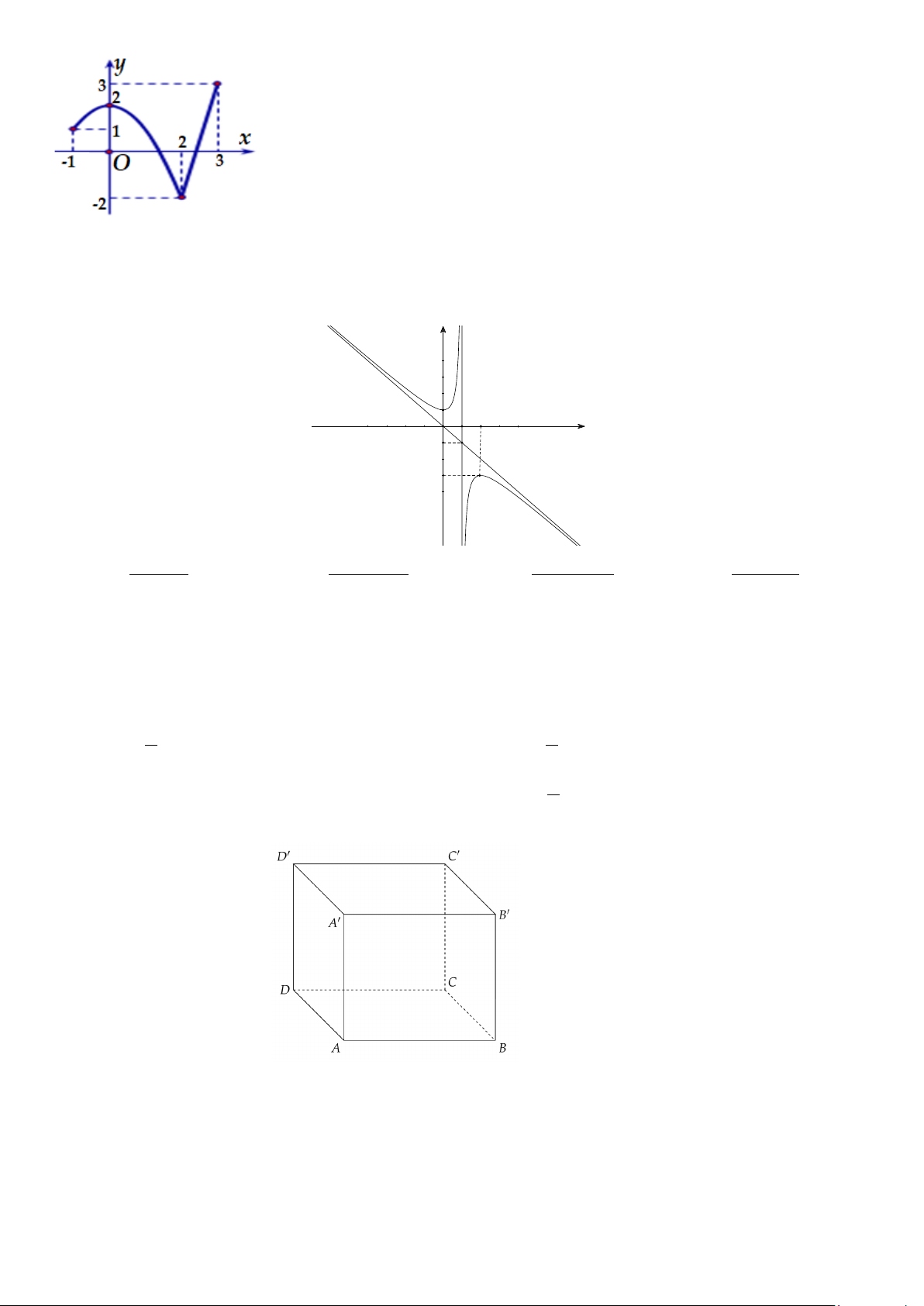 Câu 9: Đường cong trong hình bên dưới là đồ thị của hàm số nào dưới đây? y 1 O 1 2 x -1 -3 2 2 2 2 A. −x + − + −x − x + − + = x y . B. x 2x 2 y = . C. 1 y = . D. x x 1 y = . x −1 x +1 x +1 −x +1