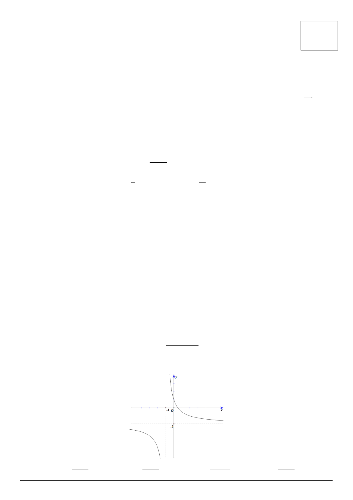 Câu 11: Đồ thị hình bên là của hàm số: 1− 2x 1− 2x 2x +1 2 3 − 2x A. y = . B. y = . C. y = . D. y = x +1 1− x x +1 x + . 1