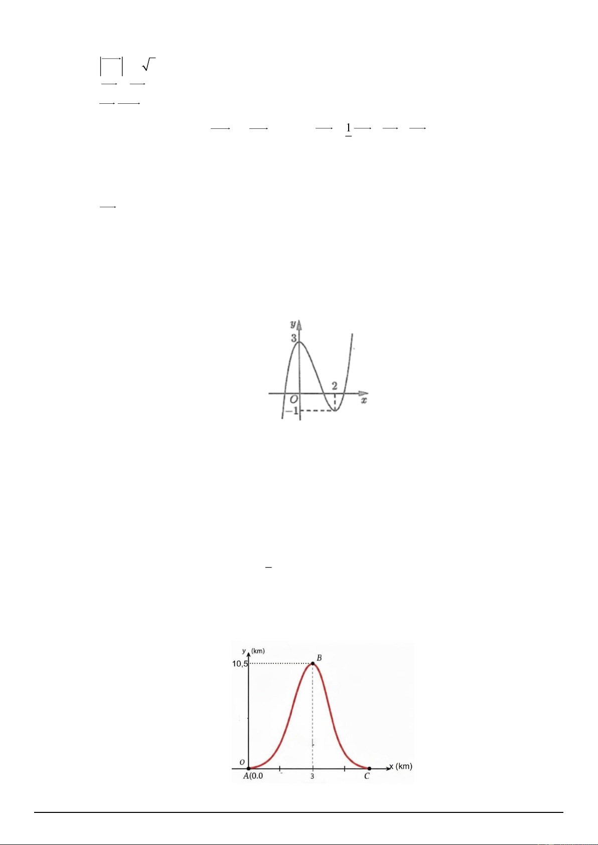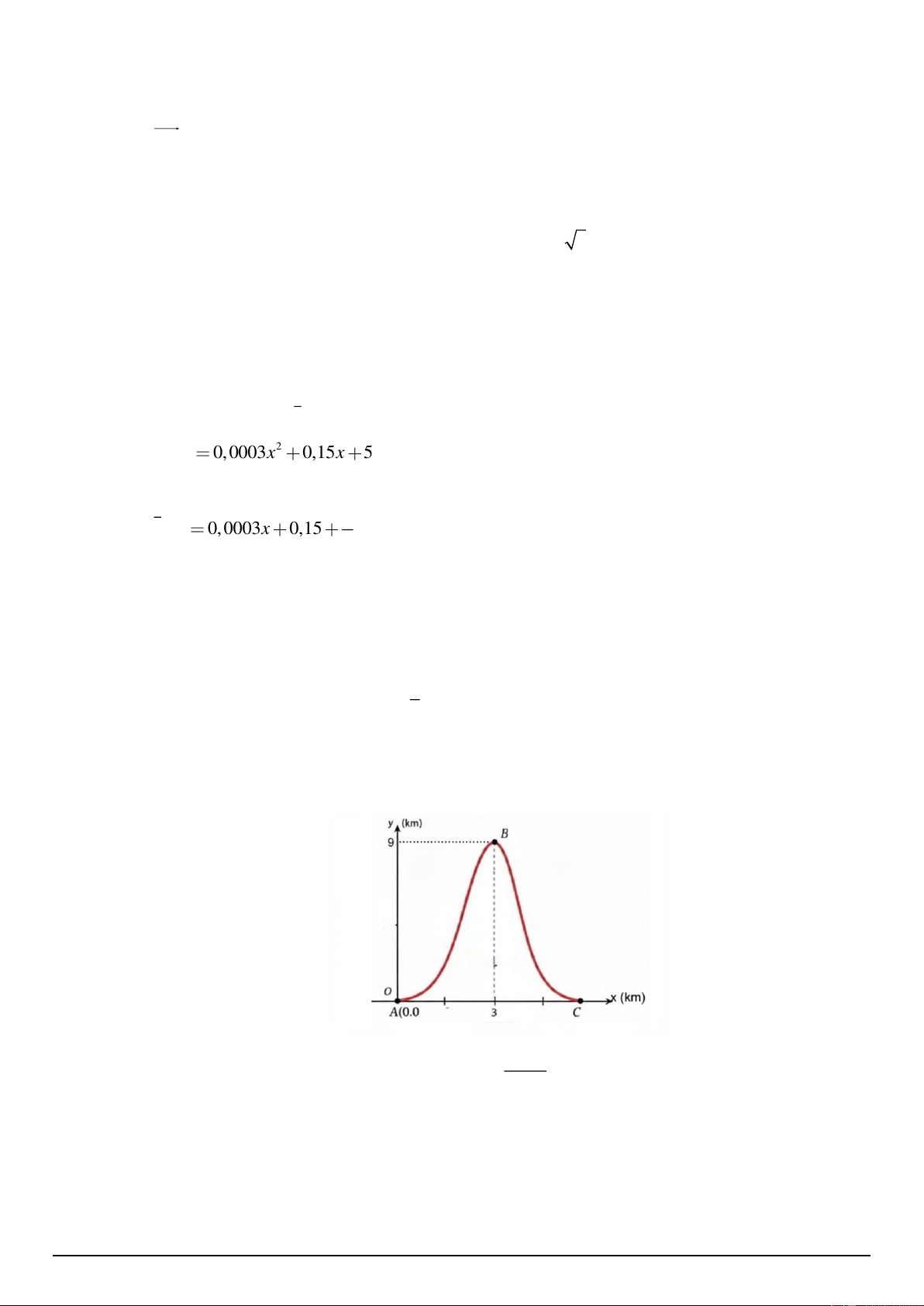 cao, đơn vị là km. Máy bay cất cánh từ vị trí A và đạt độ cao cực đại tại vị trí B sau khi