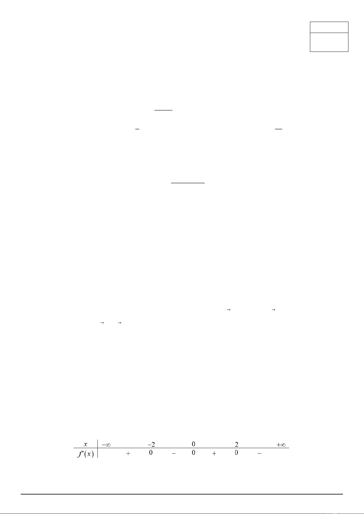 − ;2) . Tọa độ của vectơ BA là A. (1; 1 − ;2) . B. (2;0;0) . C. ( 2 − ;2; 4 − ) . D. (2; 2 − ;4) . Câu 2: Cho hàm số 3 2
