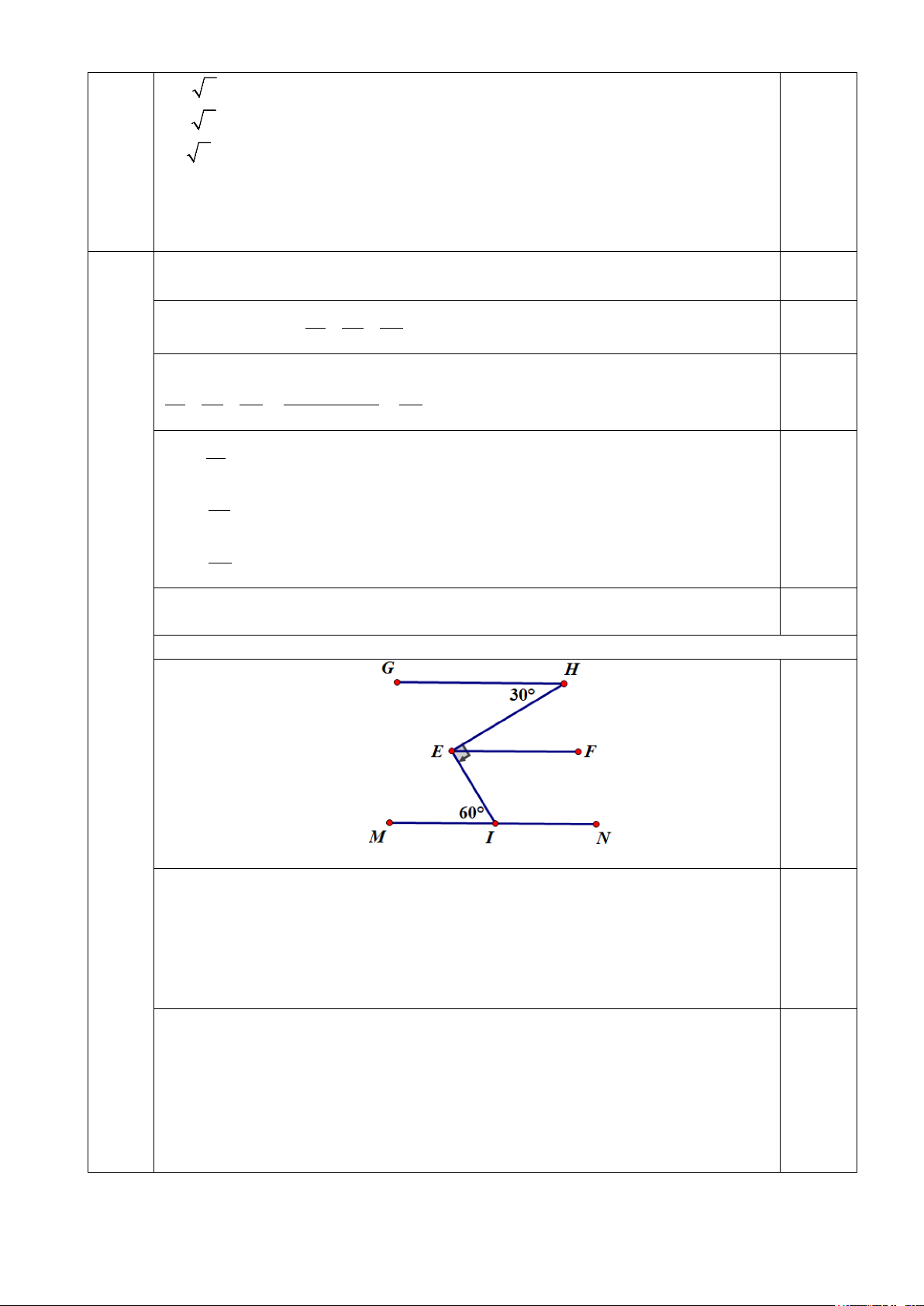 HEF + 60° = 90° (Vì = ° FEI 60 ; E H I = 0 9 ° ) (2,0 điểm) HEF = 90° − 60° = 30° 0,5 Vì = GHF HEF = 30°