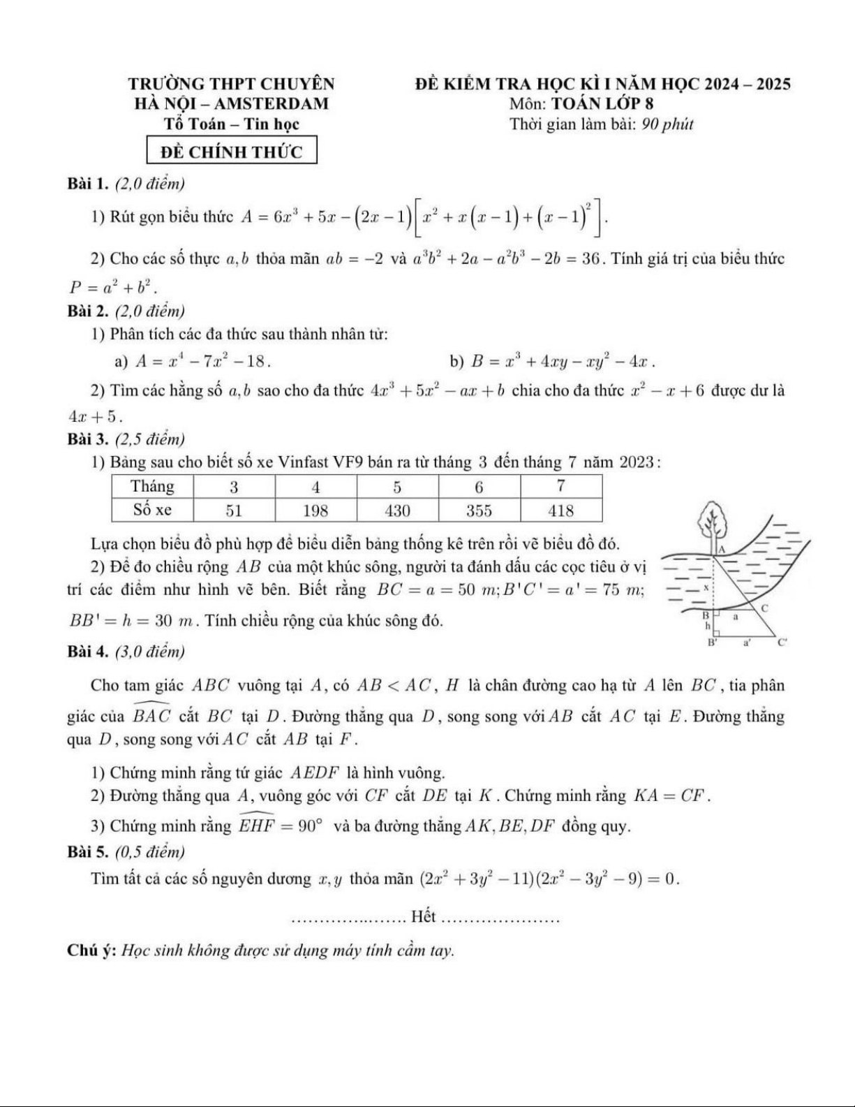 Đề học kì 1 Toán 8 năm 2024 – 2025 trường THPT chuyên Hà Nội – Amsterdam