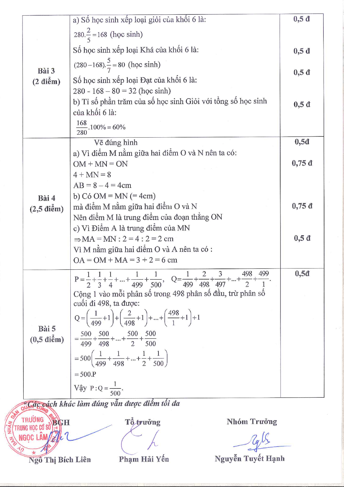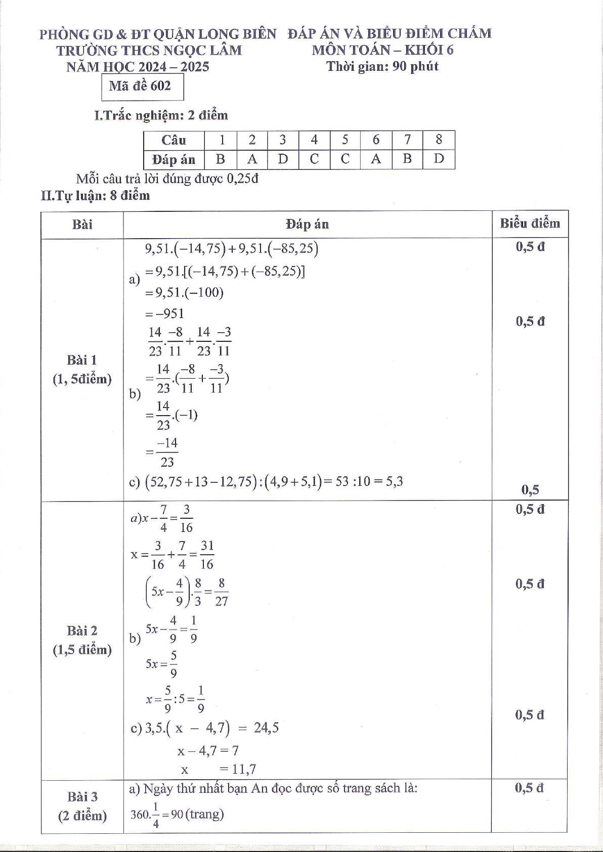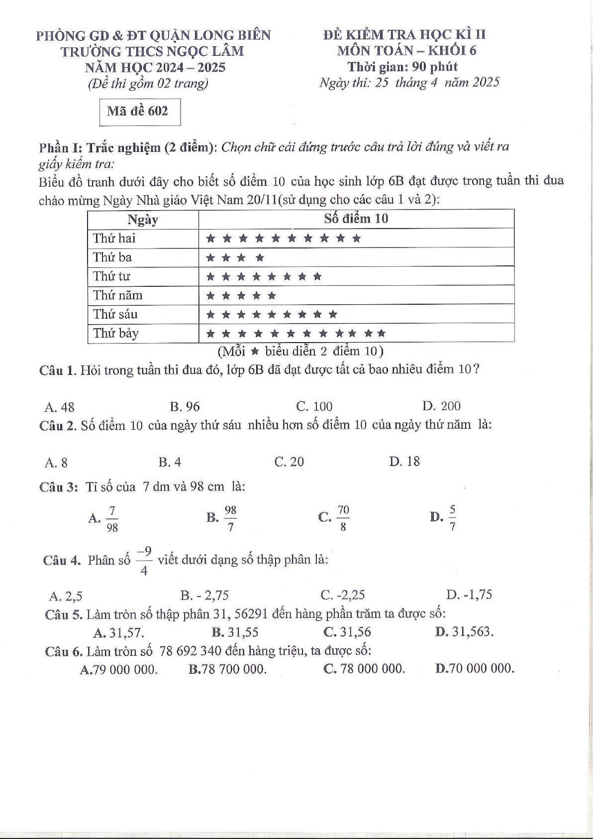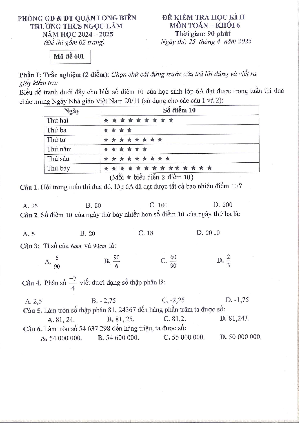 Đề học kì 2 Toán 6 năm 2024 – 2025 trường THCS Ngọc Lâm – Hà Nội