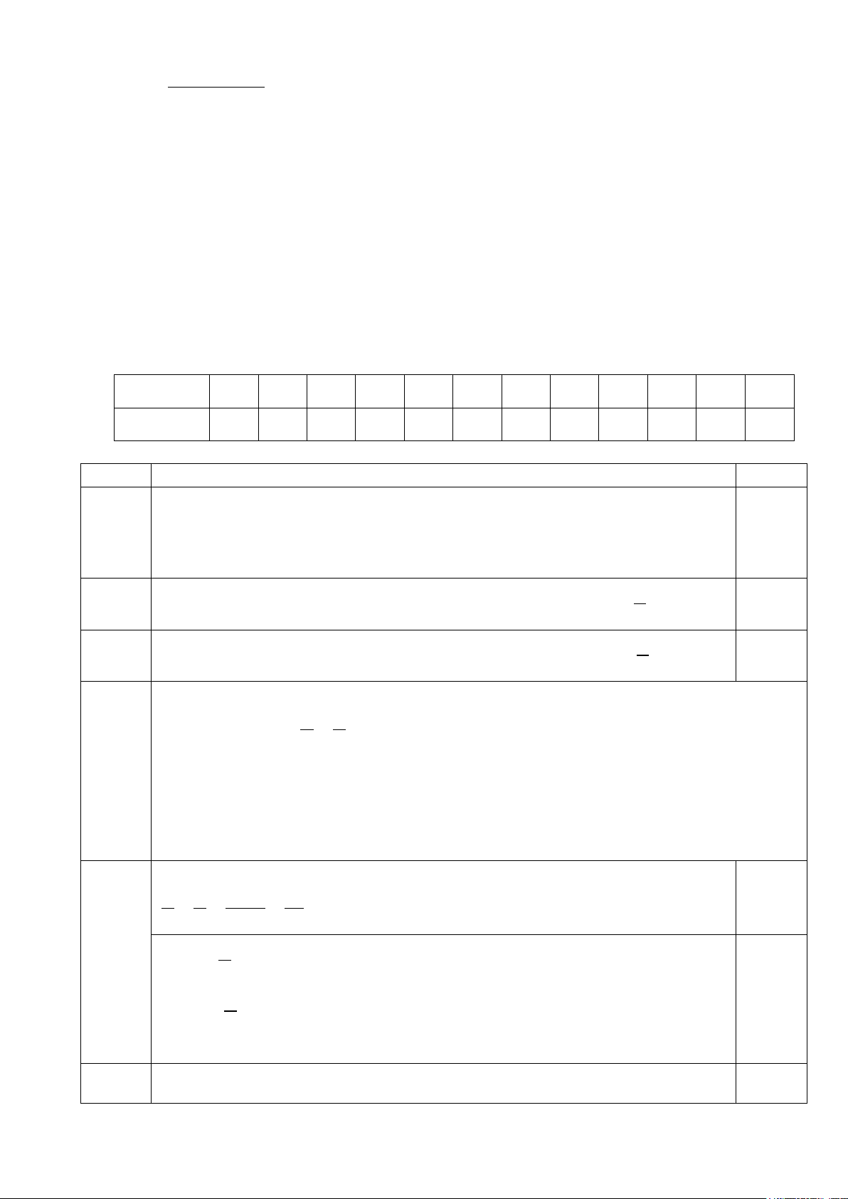 Mỗi câu đúng được 0,25 điểm Câu 1 2 3 4 5 6 7 8 9 10 11 12 Đáp án D B D C A C A C B C B B
