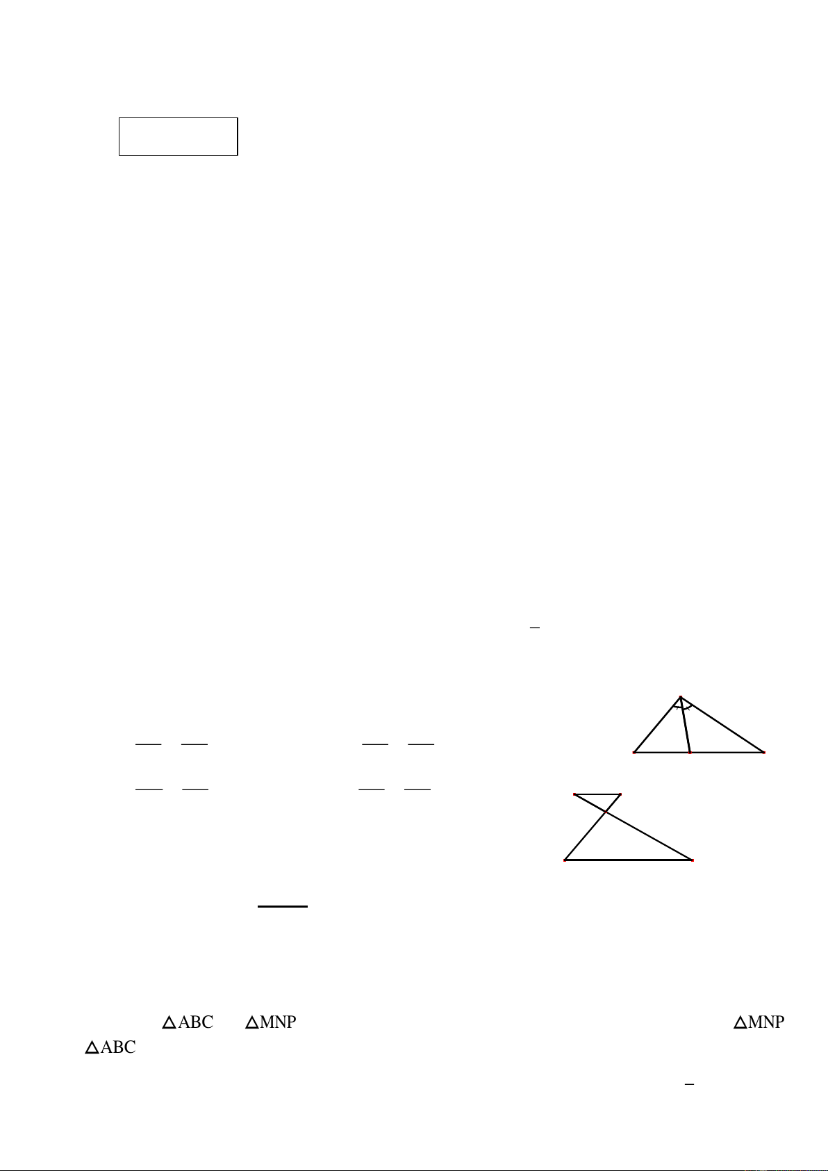 Câu 11. Cho ABC ∽ MNP biết AB = 9cm; MN = 4,5cm. Khi đó tỉ số đồng dạng của MNP và ABC là A. k = 2 ; B. k = 9; C. k = 4,5 ; D. 1 2