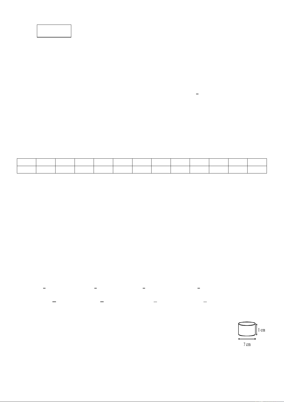 Câu 8. Quan sát hình vẽ và cho biết độ dài bán kính đáy của hình trụ là : A. 1 cm B. 3,5 cm C. 7 cm D. 8 cm.