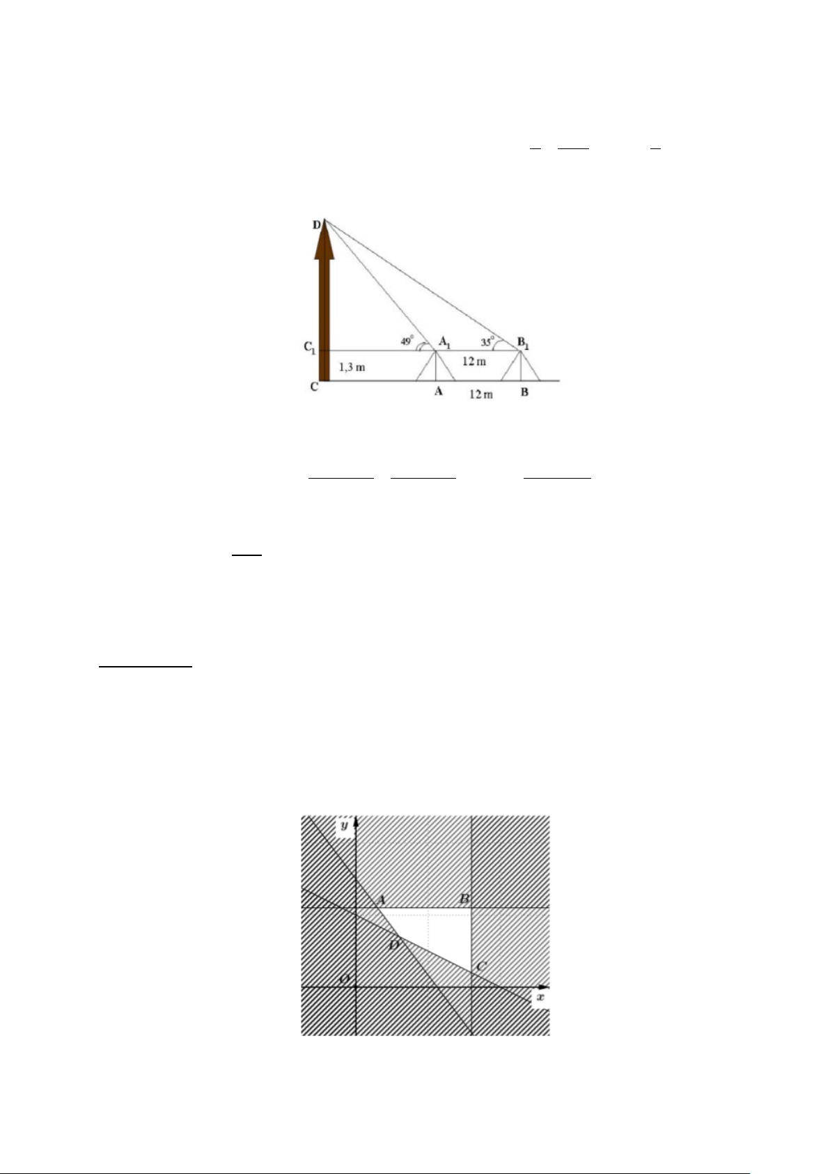 Do đó 4m + n = 6. Câu 4: Ta có 0 0 0 = − = 0 0 0 = − = 0 C DA 90 49 41 ;C DB 90 35 55 nên A DB =14 . 1 1 1 1 1 1 0 A B A D 12.sin 35 1 1 1