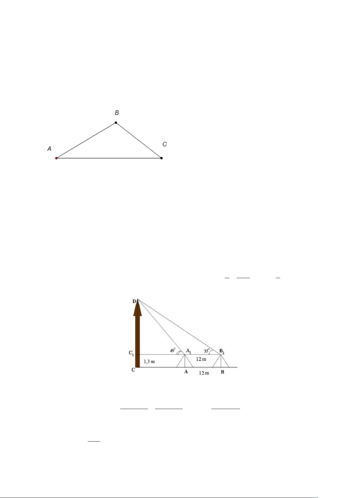 kế có chiều cao h =1,3m . Gọi D là đỉnh tháp và hai điểm A , B cùng thẳng hàng với C thuộc chiều cao 1 1 1
