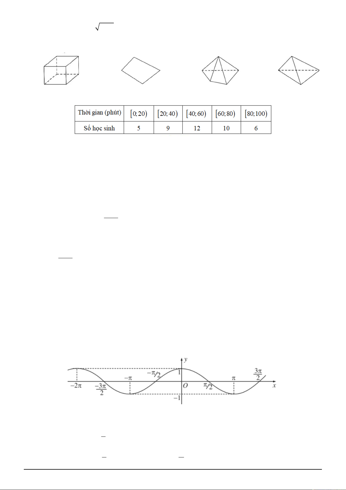 Câu 3. Cho hàm số y cos x có đồ thị như hình bên dưới.