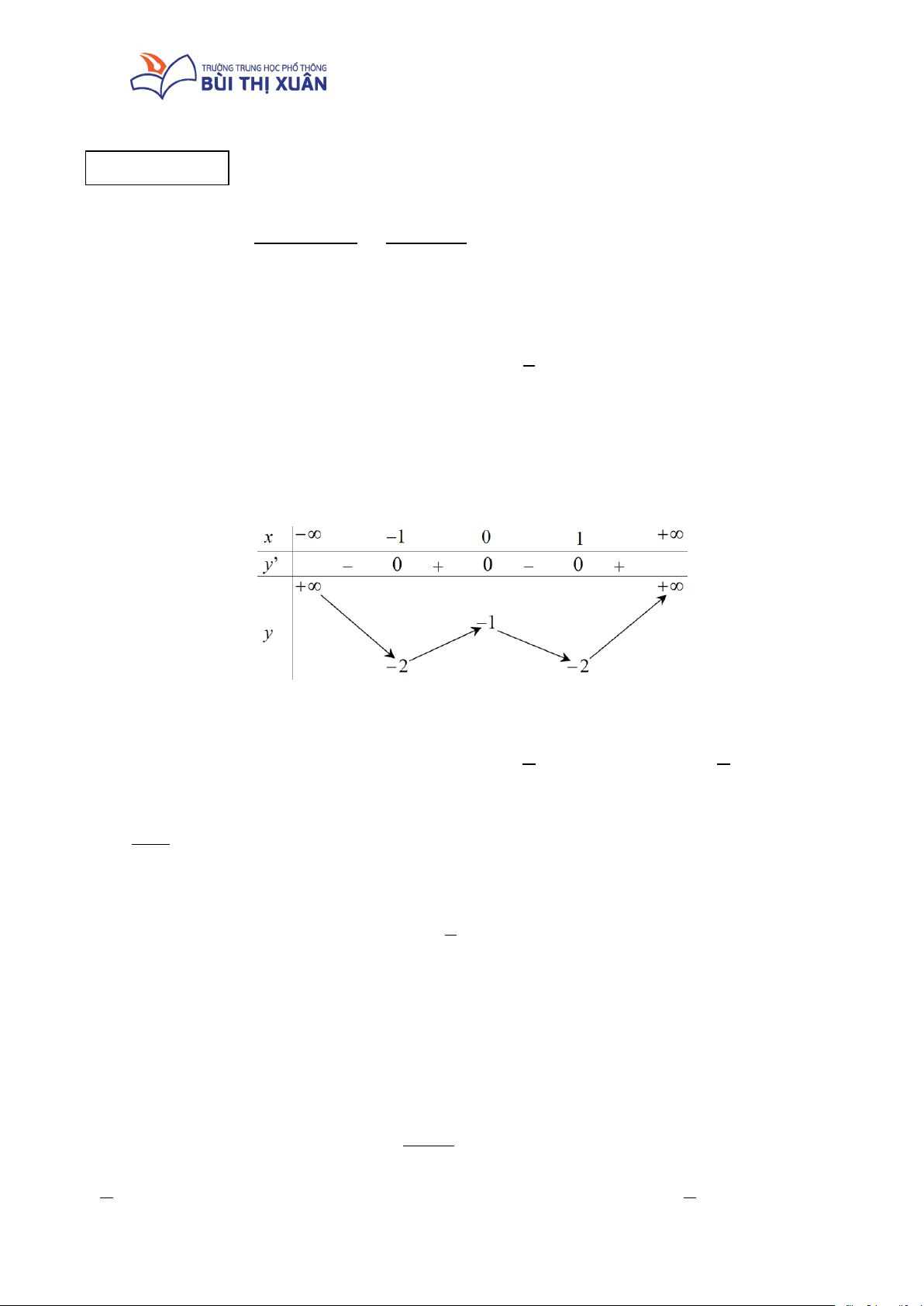 nghịch biến trên khoảng    x + m ( ;0 −∞ ) ?  A. Vô số.  B. 0 .  C. 3.  D. 2.  Câu 25: Cho hàm số  3 2