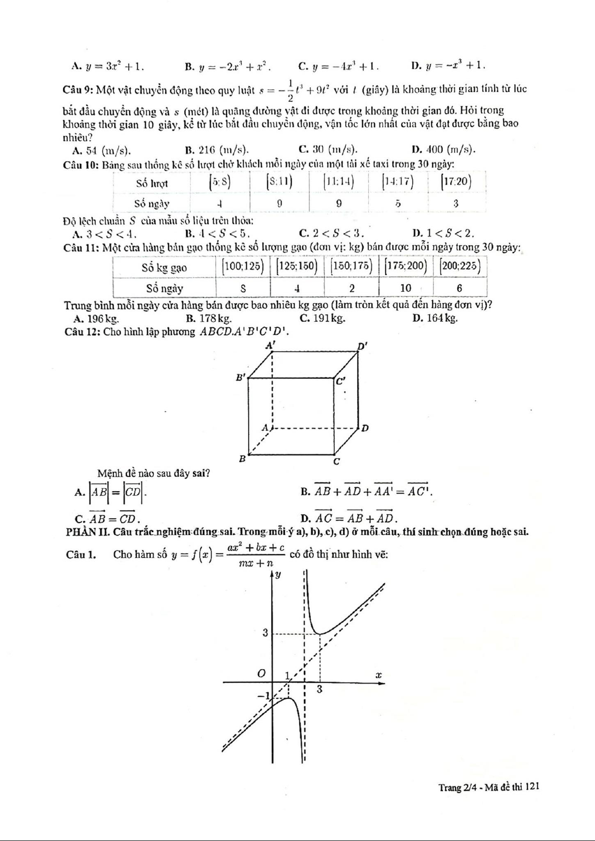 Đề học kì 1 Toán 12 năm 2023 – 2024 trường THPT Thủ Đức – TP HCM
