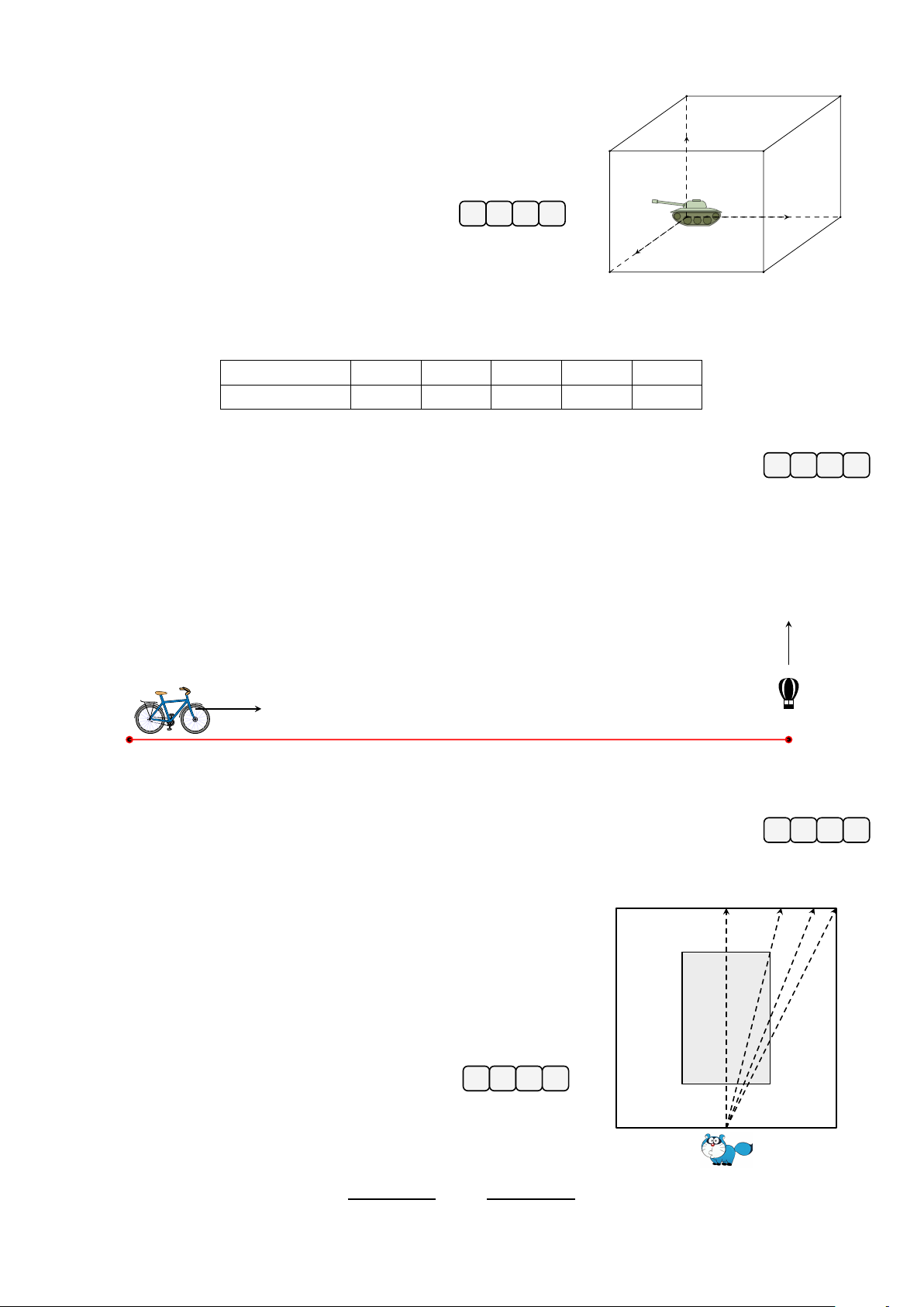 cách ngắn nhất giữa người đi xe đạp và khinh khí cầu đạt được khi t bằng bao nhiêu? (làm tròn kết quả đến hàng phần trăm) A O Đáp án: Câu 6.