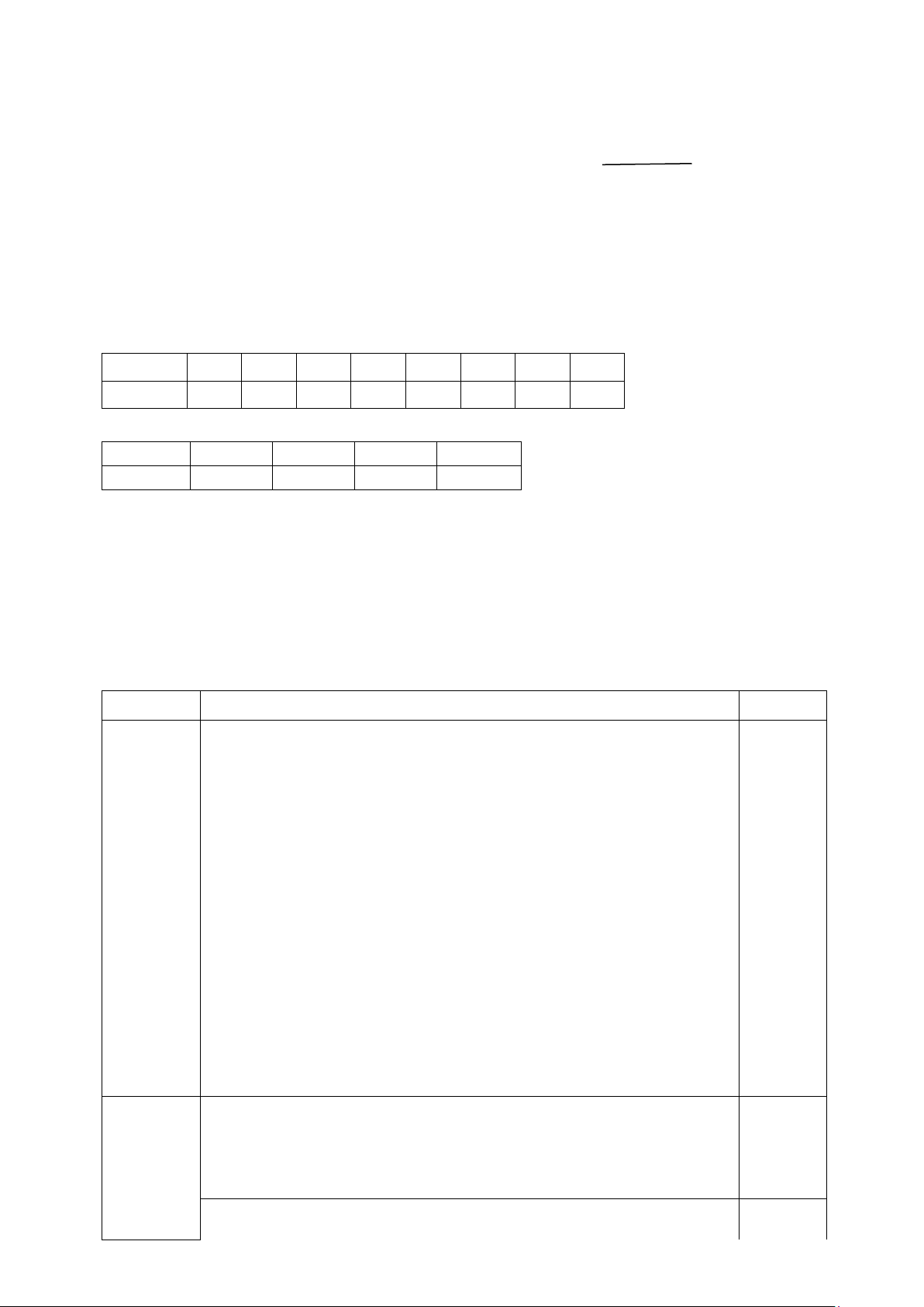 2. Trắc nghiệm đúng – sai (điểm) Câu 9a) 9b) 9c) 9d) Đáp án Đ S Đ S Cách cho điểm: