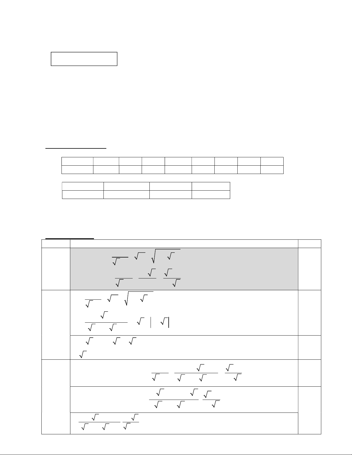 3) Điểm toàn bài là tổng điểm của các ý trong các câu và không làm tròn.