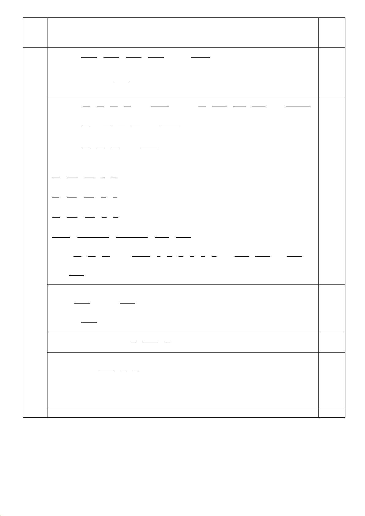 − ,32 − 5,68) + (73,3+ 26,7) + 24,25 0,25 = 10 − +100 + 24,25 = 114,25 0,25 a) 1 1 − x = 15 2 Bài 0,25 1.2.a x = 1 1 − 15 2 2 15 x = − 30 30 13 x − = 0,25 30 Vậy 13 x − = 30 Bài 1 x − 2 − 2.b b) 2 1 3 − = 6 2 3 2x −1 2 − 3 = + 6 3 2 2x −1 5 = 6 6 0,25 2x −1= 5 x = 3 Vậy x = 3 Trang 3/2 0,25