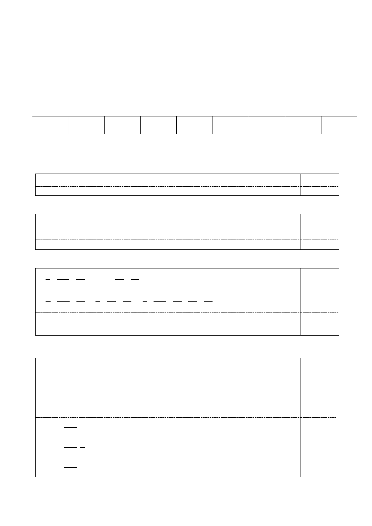 Bài 1. (1,5 điểm ) Thực hiện phép tính: a) (0,5 điểm) (− ) 3 2. 5 + 48: 2 = 10 − + 48:8 0,25 = 10 − + 6 = 4 − 0,25 b) (0,5 điểm) ( 1 − 0) :( 2 − ) + (3,2 −8,6) 0,25 = 5 + ( 5, − 4) = 0, − 4 0,25 c) (0,5 điểm) 3 13 − 5 8 − 6 . 0,75. + + + 4 21 27 21 27 0,25 3 13 − 5 3 8 − 6 3 13 − 5 8 − 6 . . . = + + + = + + + 4 21 27 4 21 27 4 21 27 21 27 3 13 − 8 − 5 6 3 11 3 16 − 4 = . + + + = . 1 − + = . − = 4 0,25 21 21 27 27 4 27 4 27 9