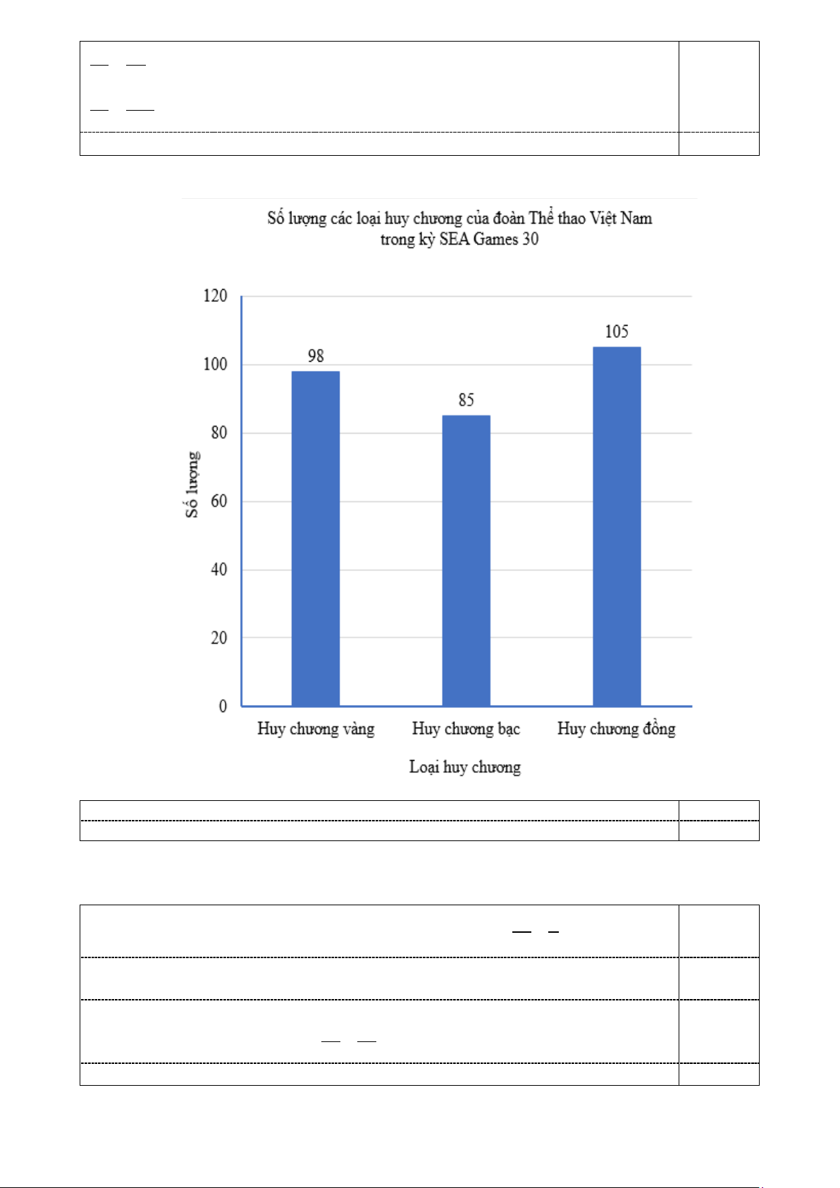 Bài 3 (1,0 điểm). Đoàn Thể thao Việt Nam trong kỳ SEA Games 30 diễn ra tại Philippines đã giành được