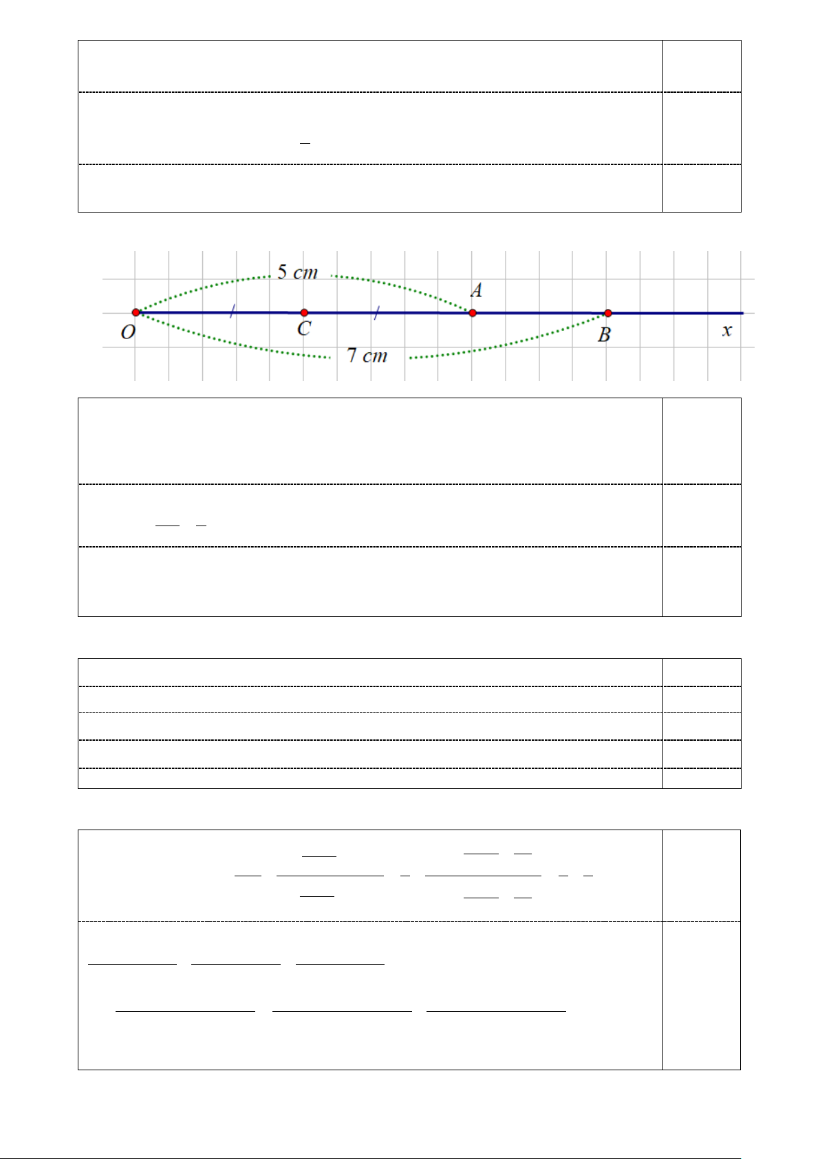 Bài 6 (1,0 điểm). Trên tia Ox lấy hai điểm A và B sao cho OA = 5cm; OB = 7cm. Gọi C là trung điểm của đoạn thẳng .