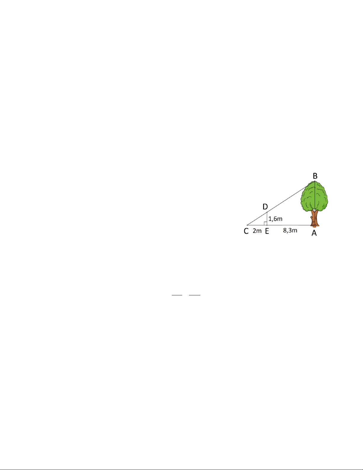 Cho hình vẽ bên, biết: DE 1,6 ; m CE 2 ; m EA 8,3 . m Tính chiều cao AB của 0,5