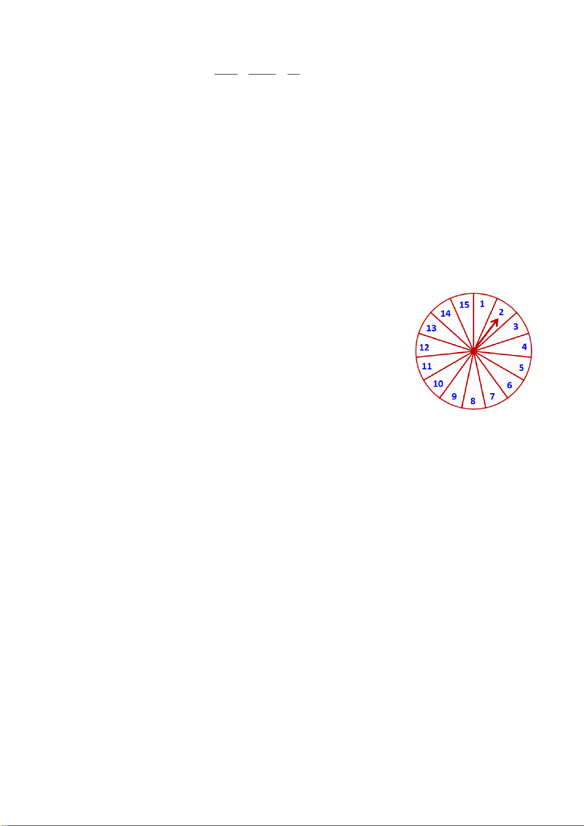 Có 15 kết quả có thể xảy ra khi quay ngẫu nhiên tấm bìa một lần.  0,25  0,5 điểm  A = {1; 2; 3; ... ; } 15  0,25