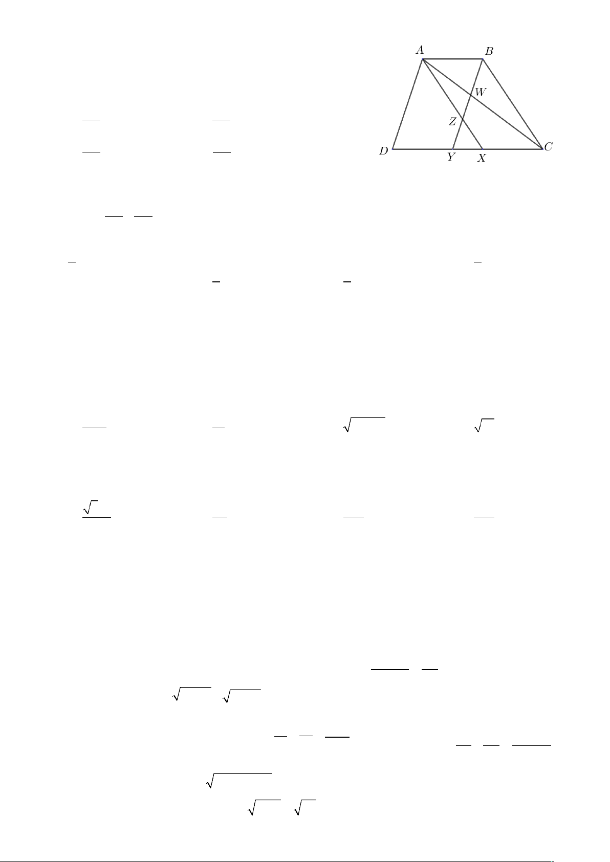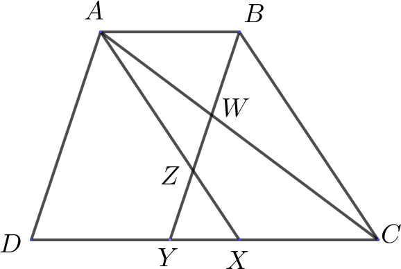 của tam giác AZW và hình thang ABCD bằng